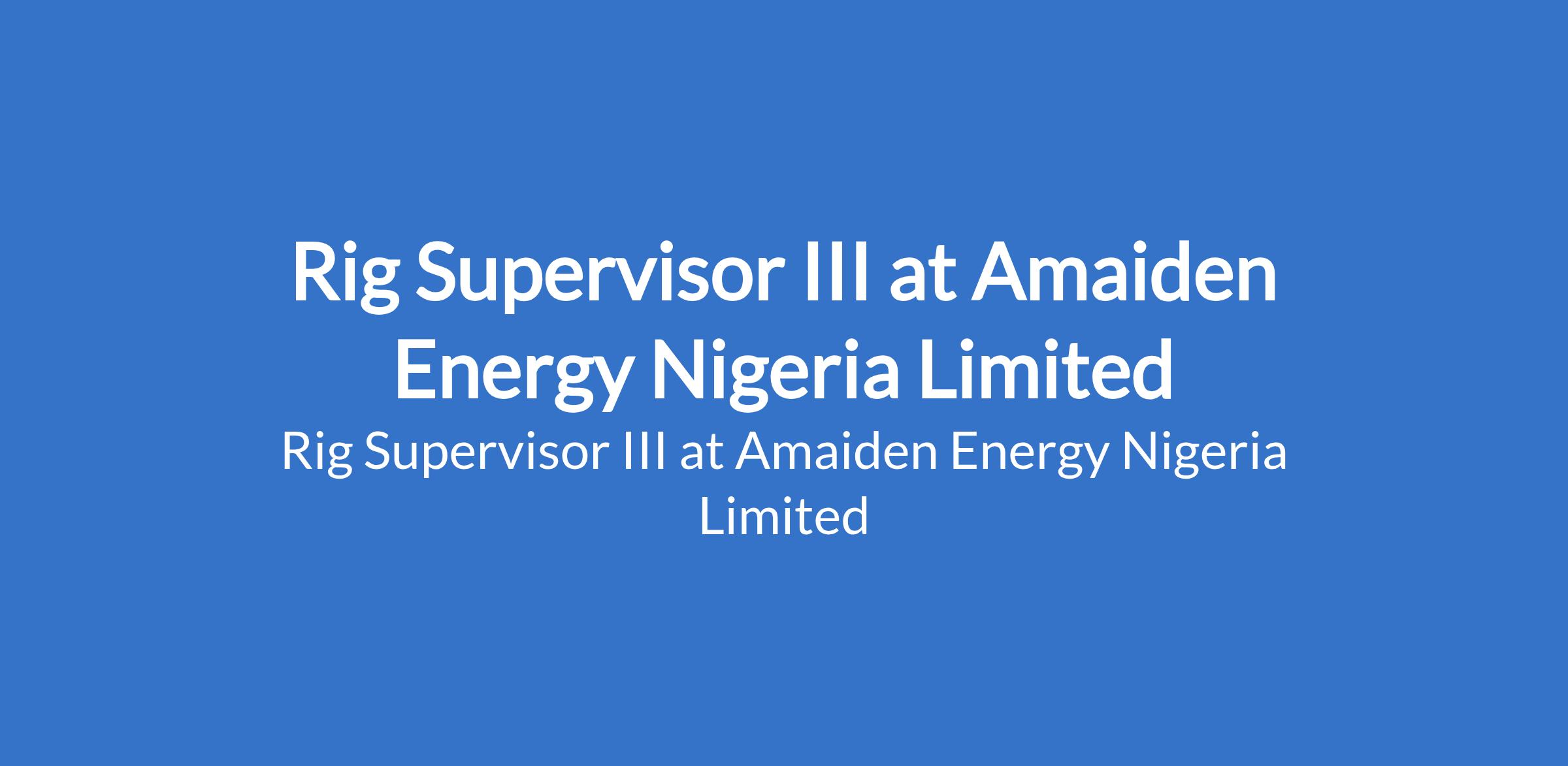 Amaiden Energy Nigeria Limited is recruiting to fill the position of: Rig Supervisor III. The position is located in Offshore, Nigeria. Interested candidates should possess a current certification for Well Control with experience in rig supervisory or rig leadership roles for drilling and completion operations.