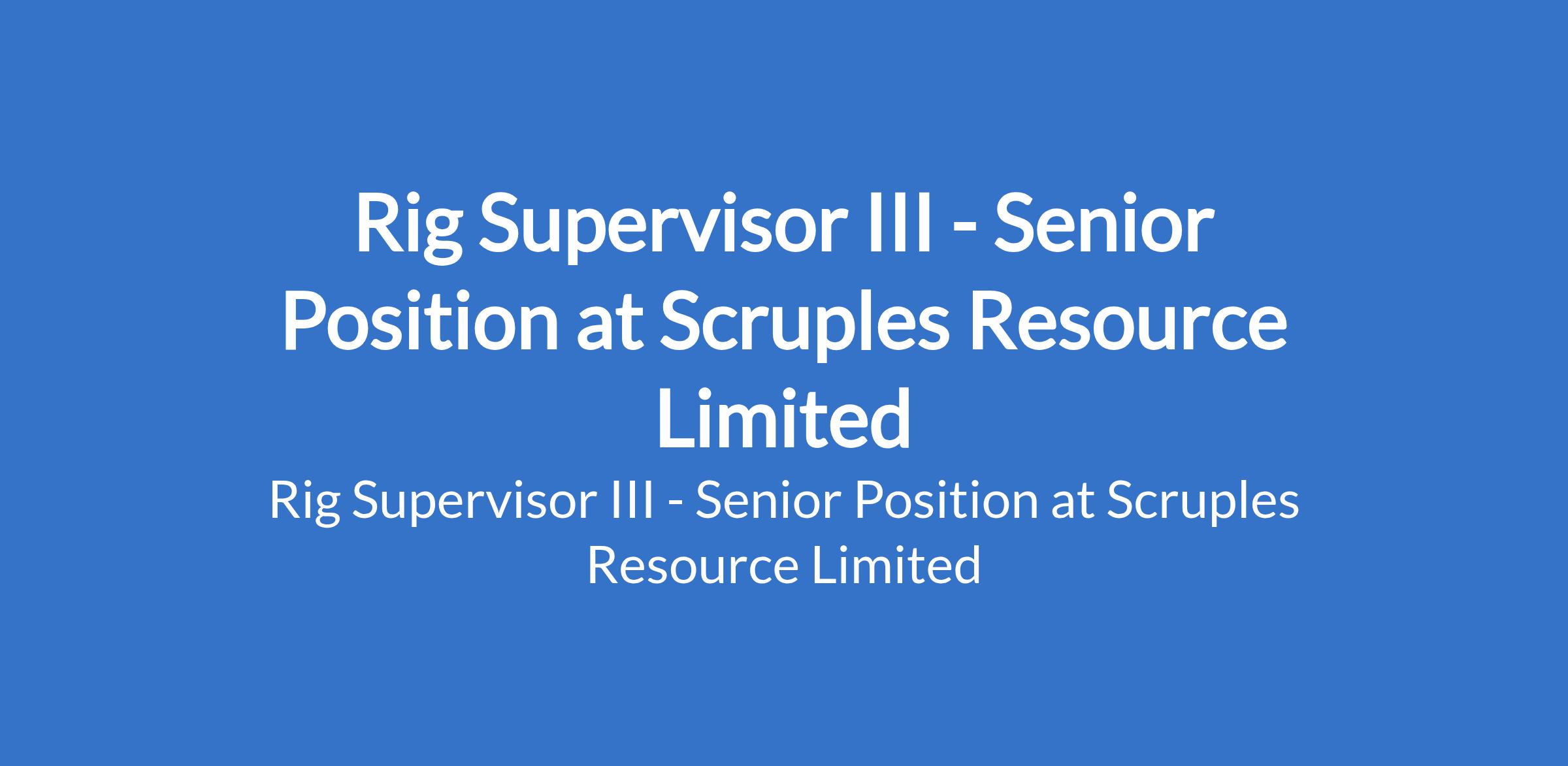 Scruples Resource Limited is recruiting to fill the position of: Rig Supervisor III - Senior Position. The position is located in Oso Akwa, Ibom State. Interested candidates should possess relevant qualifications and must have at least 3 years of experience in the oil and gas industry.