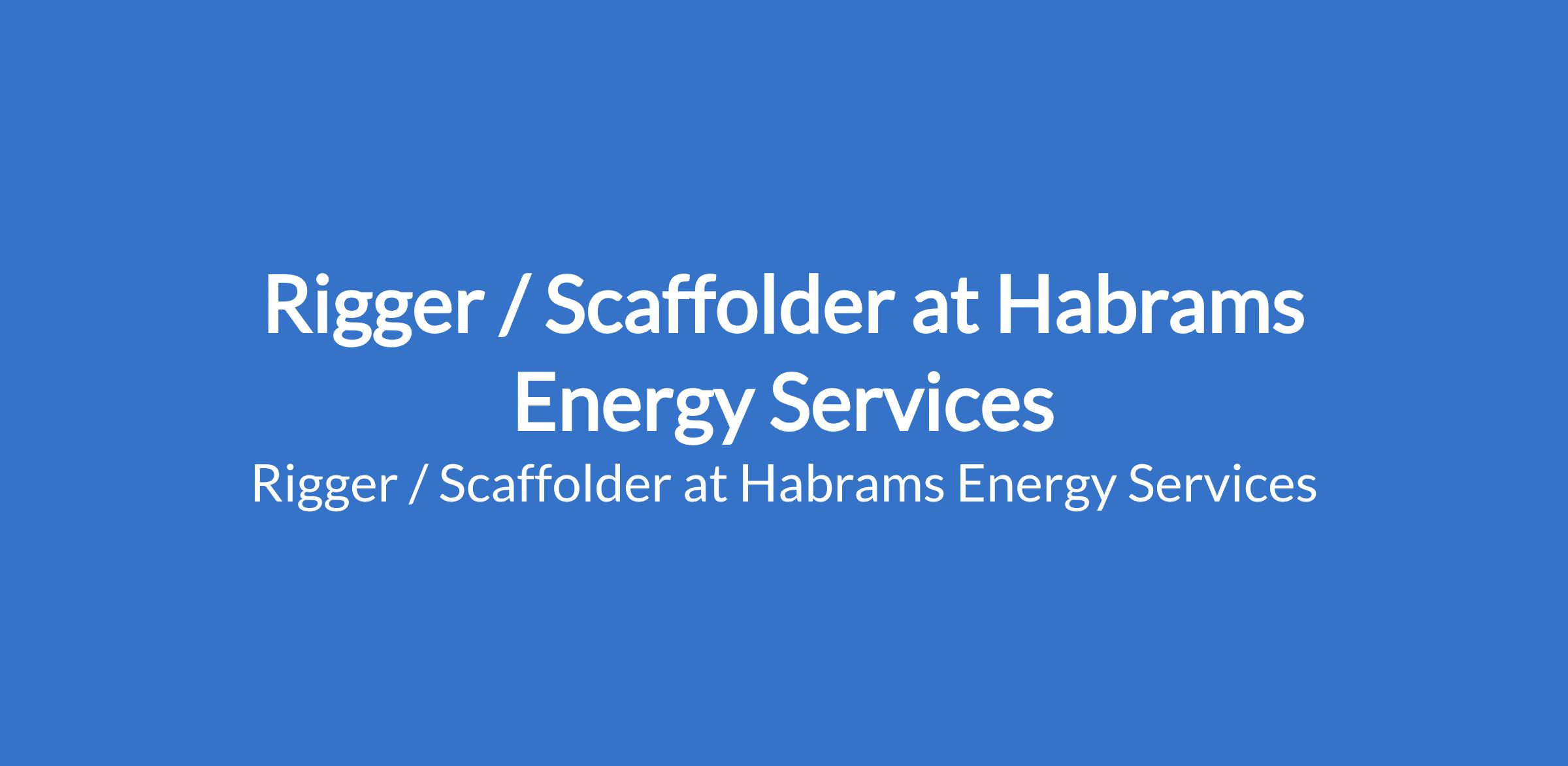 Habrams Energy Services is recruiting to fill the position of: Rigger / Scaffolder. The position is located in Lagos State. Interested candidates should possess a High School Diploma or technical certification relevant to the role with 810+ years of experience in Oil & Gas plant operations or construction.