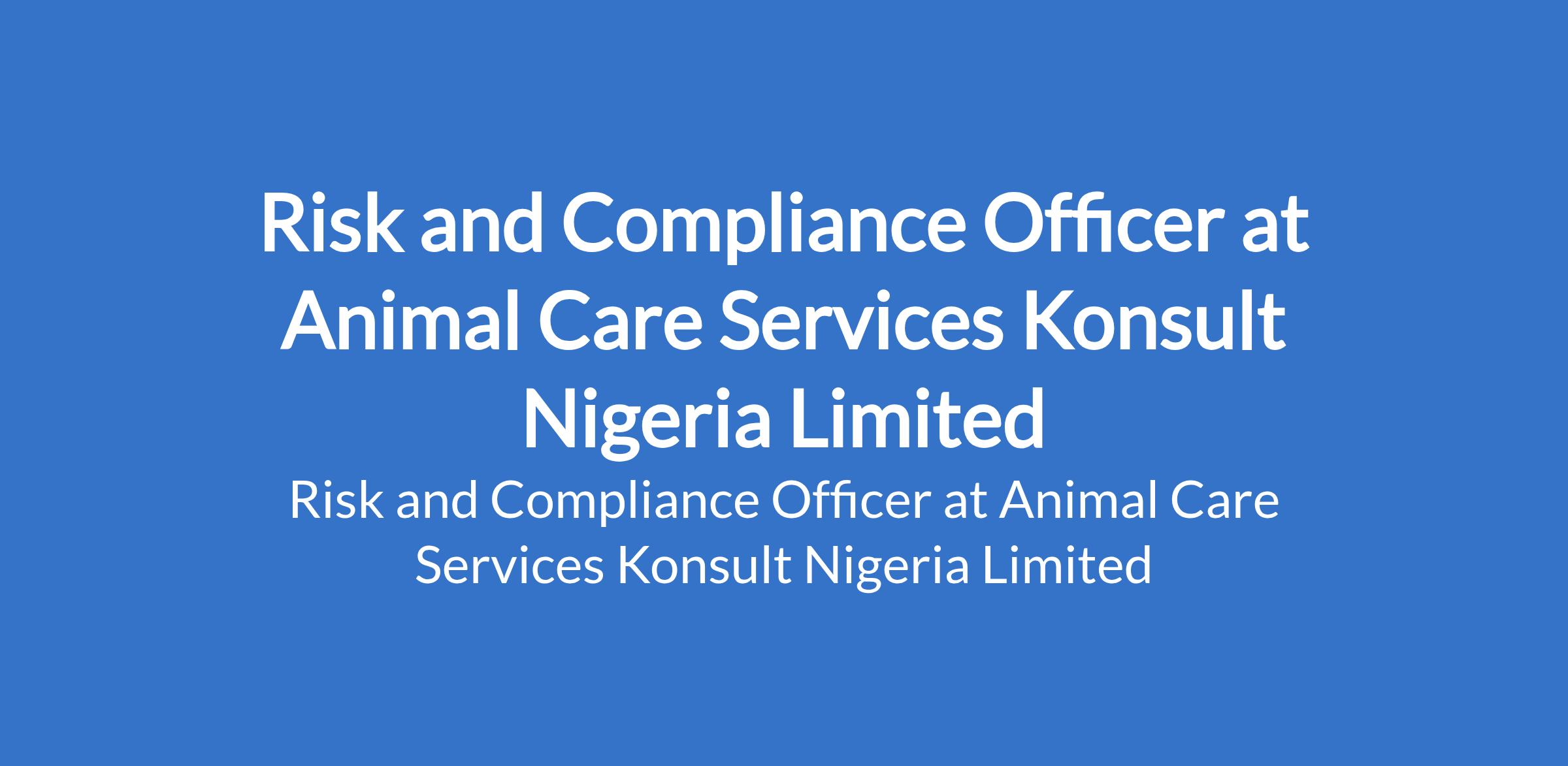 Animal Care Services Konsult Nigeria Limited is recruiting to fill the position of: Risk and Compliance Officer. The position is located in Ogere Remo, Ogun State. Interested candidates should possess a Bachelors Degree in Banking & Finance, Accounting, Business Administration, Economics, or any related field with 2 - 4 years relevant experience in Risk Management, Compliance, Audit, or Internal Control within an FMCG or manufacturing company.