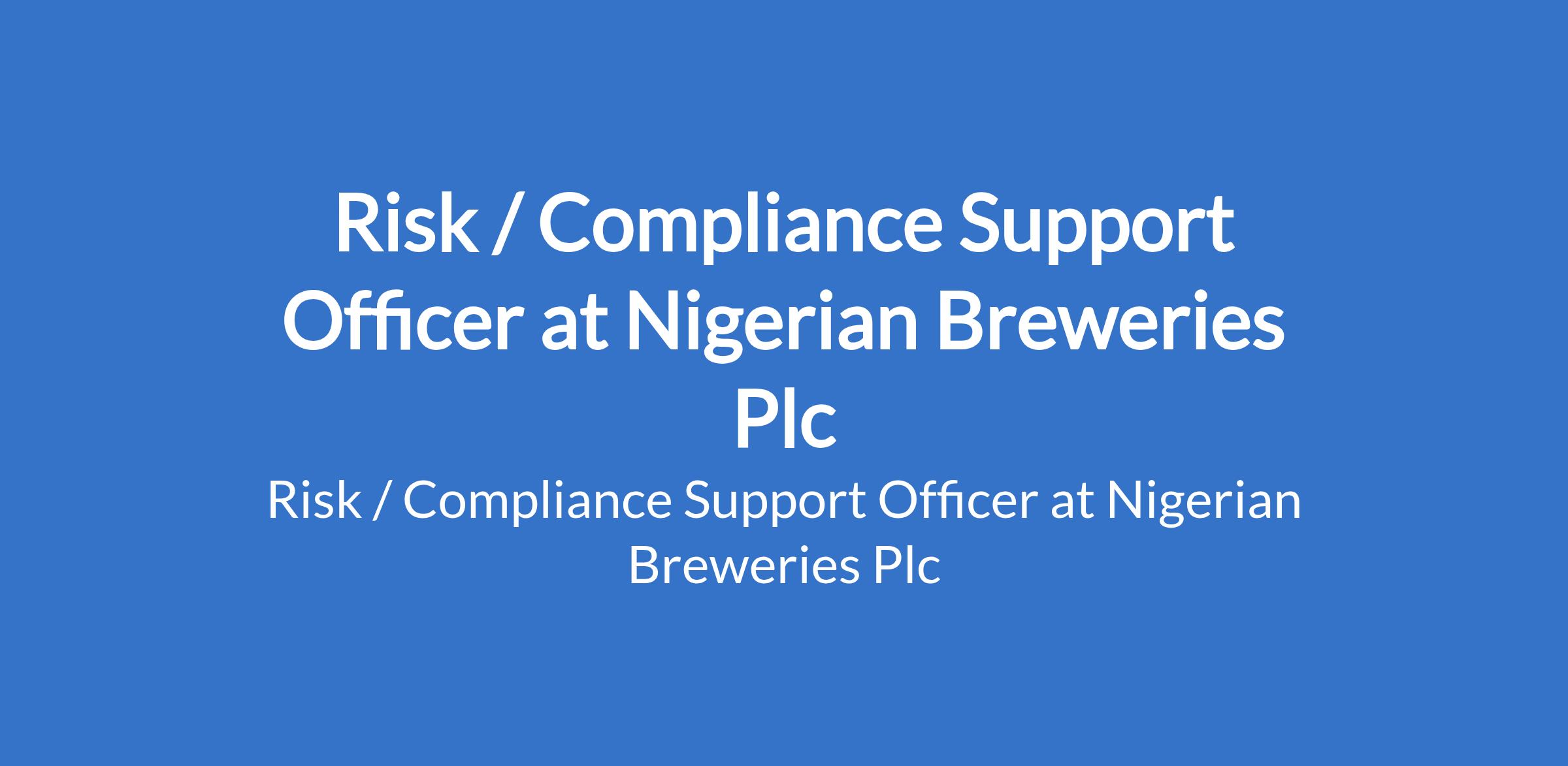 Nigerian Breweries Plc is recruiting to fill the position of: Risk / Compliance Support Officer. Interested candidates should possess a Bachelors Degree in Finance, Accounting, Business Administration, or other numerate discipline with a minimum of 5 years experience in the financial sector.