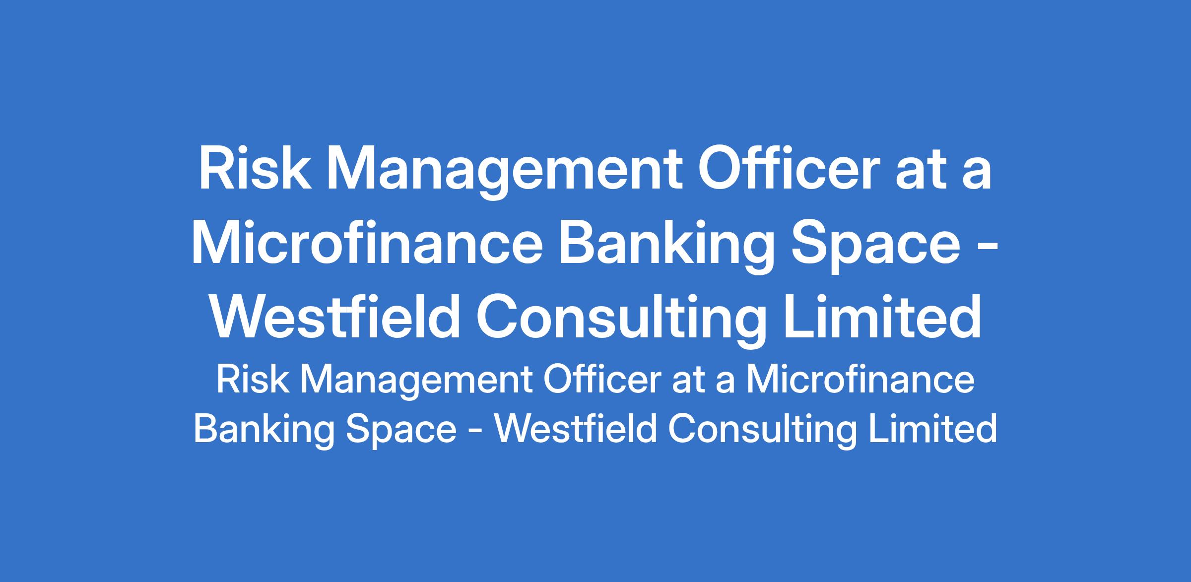 Westfield Consulting Limited - Our client in the Microfinance Banking space is recruiting to fill the position of: Risk Management Officer. Interested candidates should possess a First Degree in a numerate or Business-related discipline with a minimum of 2 years cognate work experience in Credit Analysis and Risk Management within the Financial Services Industry.