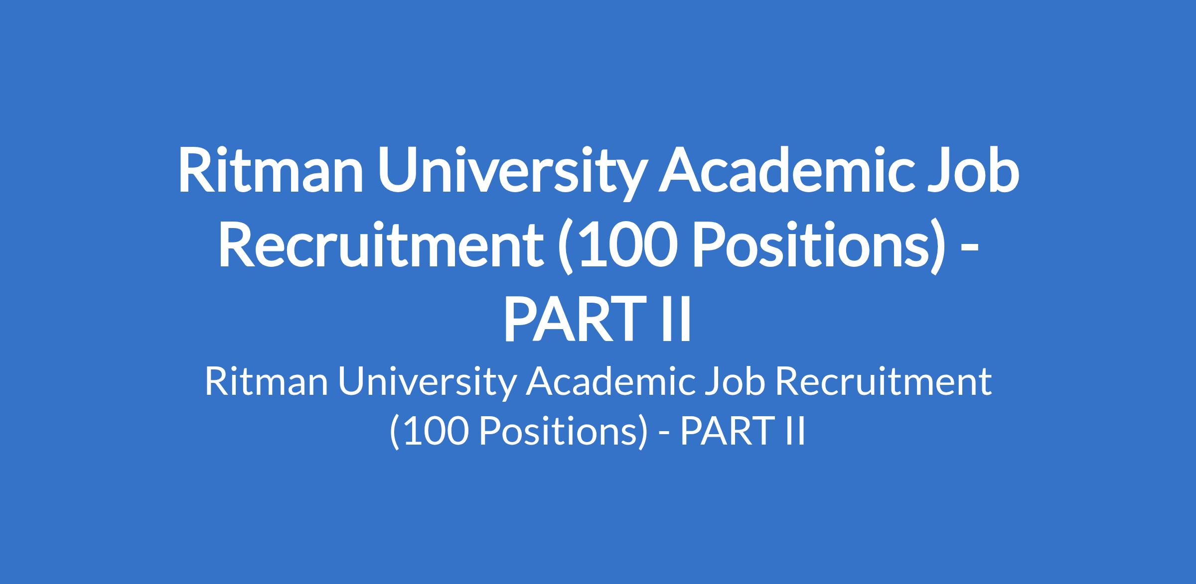 Ritman University Academic Job Recruitment (100 Positions) - PART II