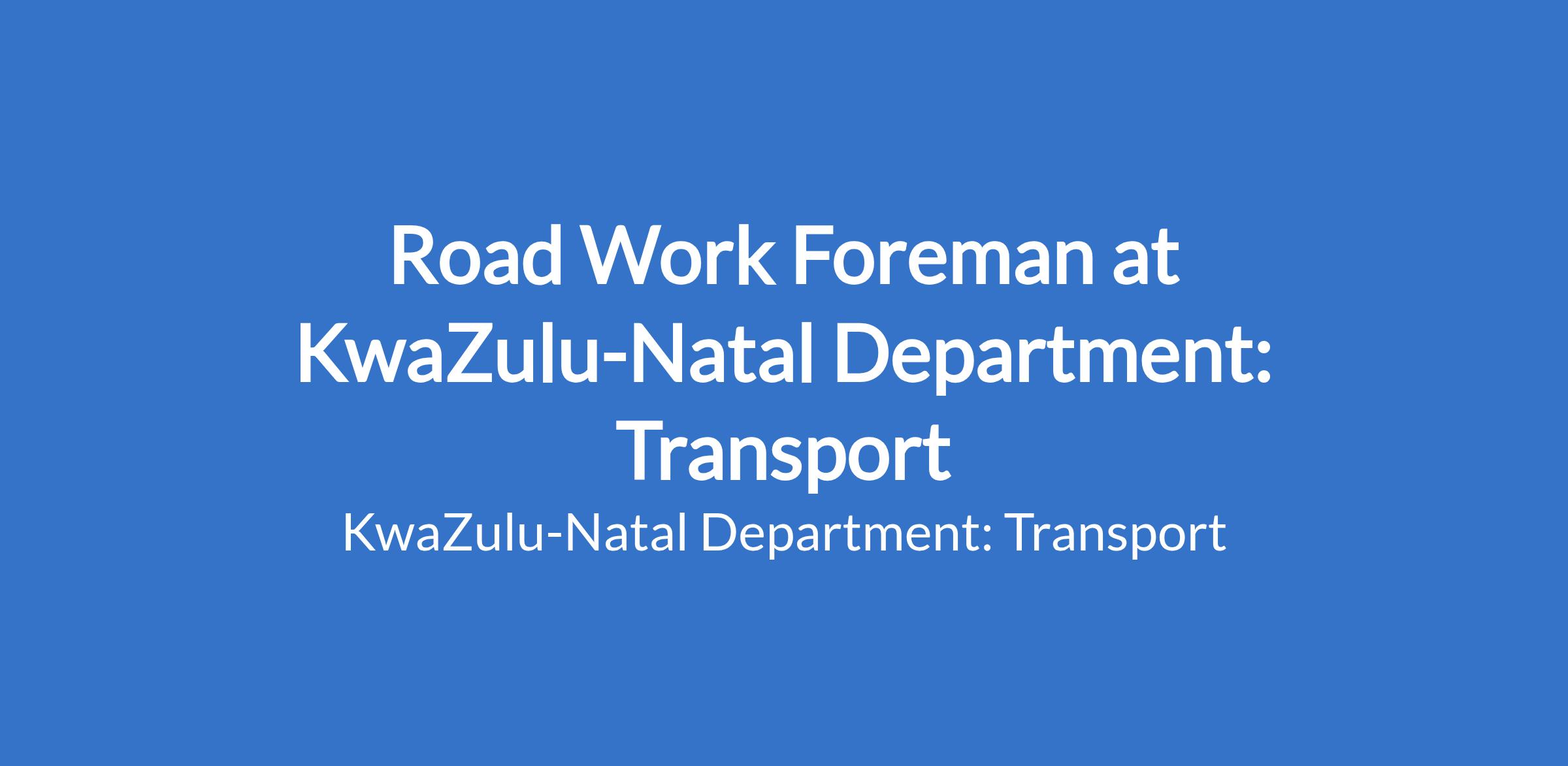 NQF Level 3 (Grade 11) / A National Certificate in Construction; plus A minimum of 3 years road work maintenance experience, plus A valid driver's licence (Minimum Code B).