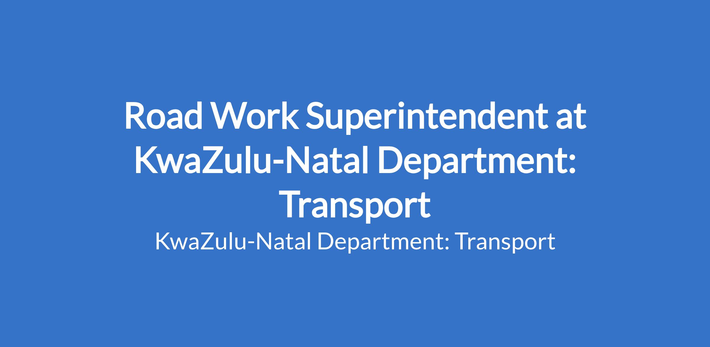 A Senior Certificate / National Certificate (Vocational) NQF Level 4; plus An undergraduate qualification (NQF Level 6 or higher) in Civil Engineering or Construction Management; plus A minimum of six (6) years' experience in a road maintenance / construction environment; plus A valid driver's licence (minimum code B).