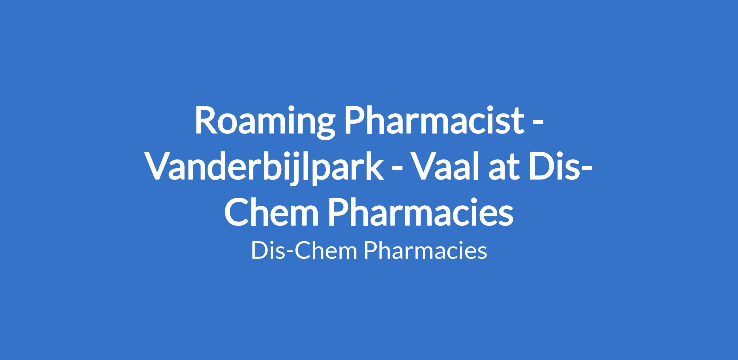 Dis-Chem Pharmacies require the services of a reputable Pharmacist for their Vanderbijlpark store. Your portfolio will cover the provision of pharmaceutical care by taking responsibility for patients' medicine-related needs, and being accountable for meeting these needs.