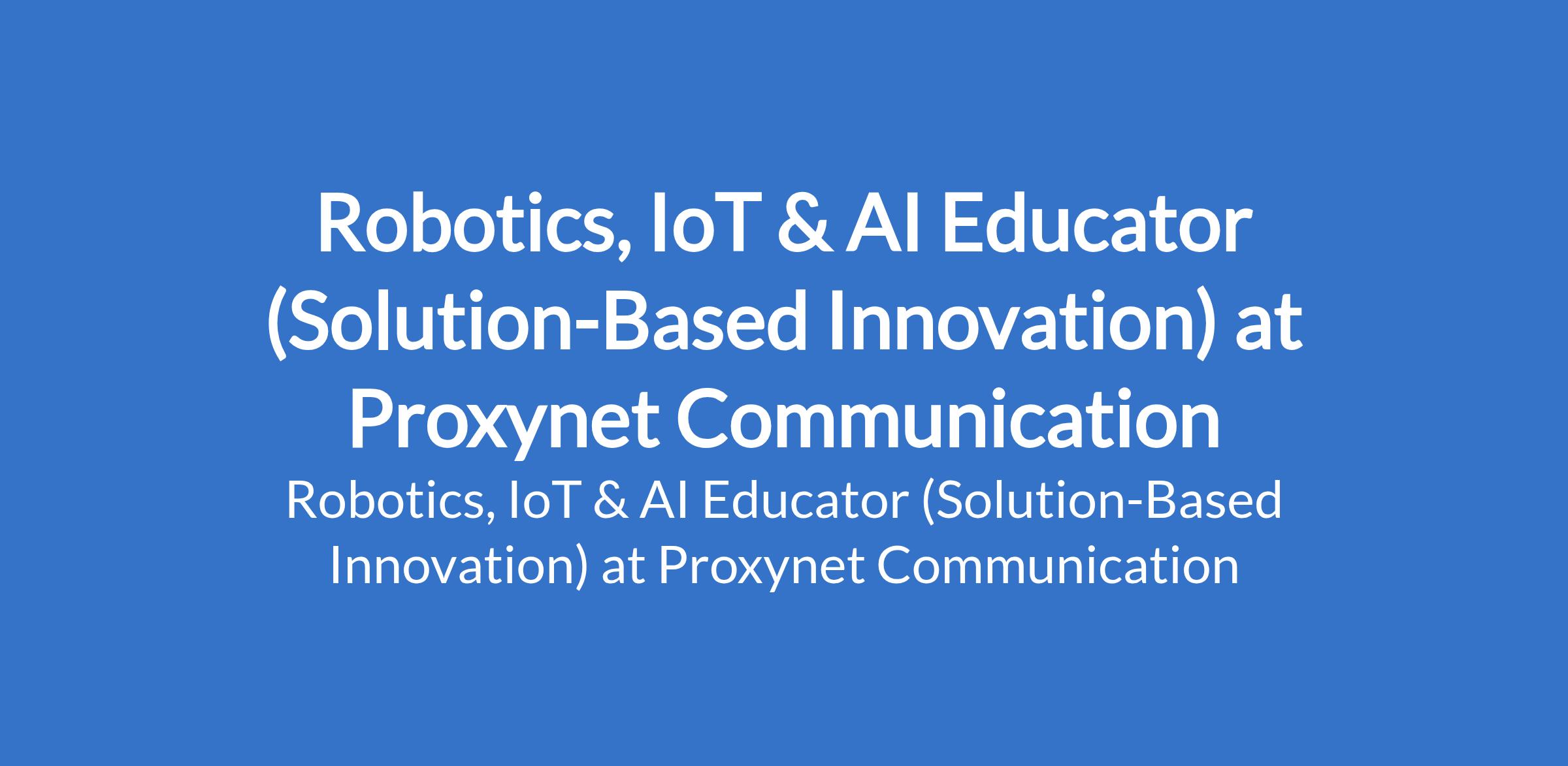 Proxynet Communication is recruiting to fill the position of: Robotics, IoT & AI Educator (Solution-Based Innovation). The position is located in Ikeja, Lagos State. Interested candidates should have a Degree in Computer Science, Robotics, Engineering, Mechatronics, AI, Electronics, or related fields.