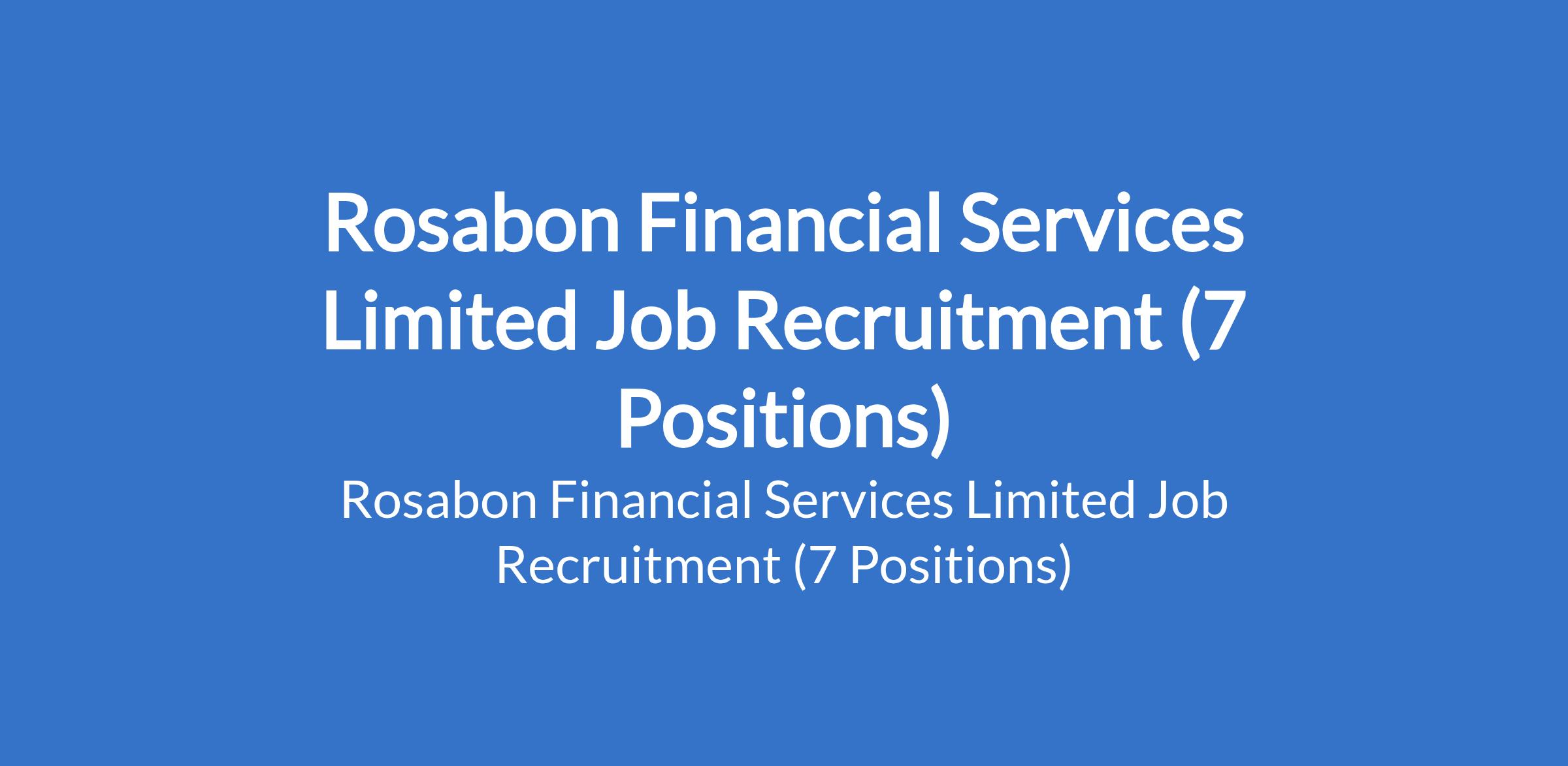 Rosabon Financial Services Limited is recruiting suitable candidates to fill the following positions in Abuja, Benue, Rivers, Kano, Ogun, Lagos, Osun, and Anambra States: Internal Audit / Control Executive, Sales Team Lead (Asset Creation / Wealth Management), Sales Executive (Salary Loan / Wealth Management), and Private Sector Sales Team Lead.