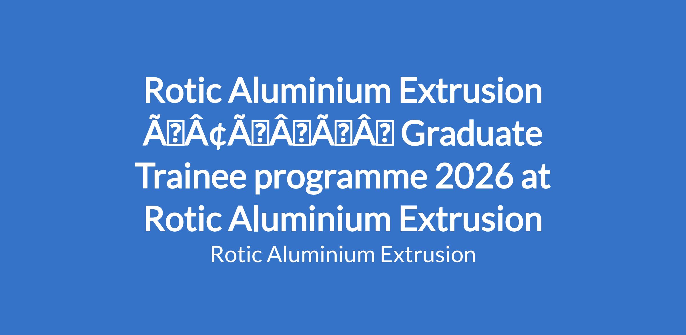 Rotic Aluminium Extrusion âÃÂàGraduate Trainee programme 2026 at Rotic Aluminium Extrusion