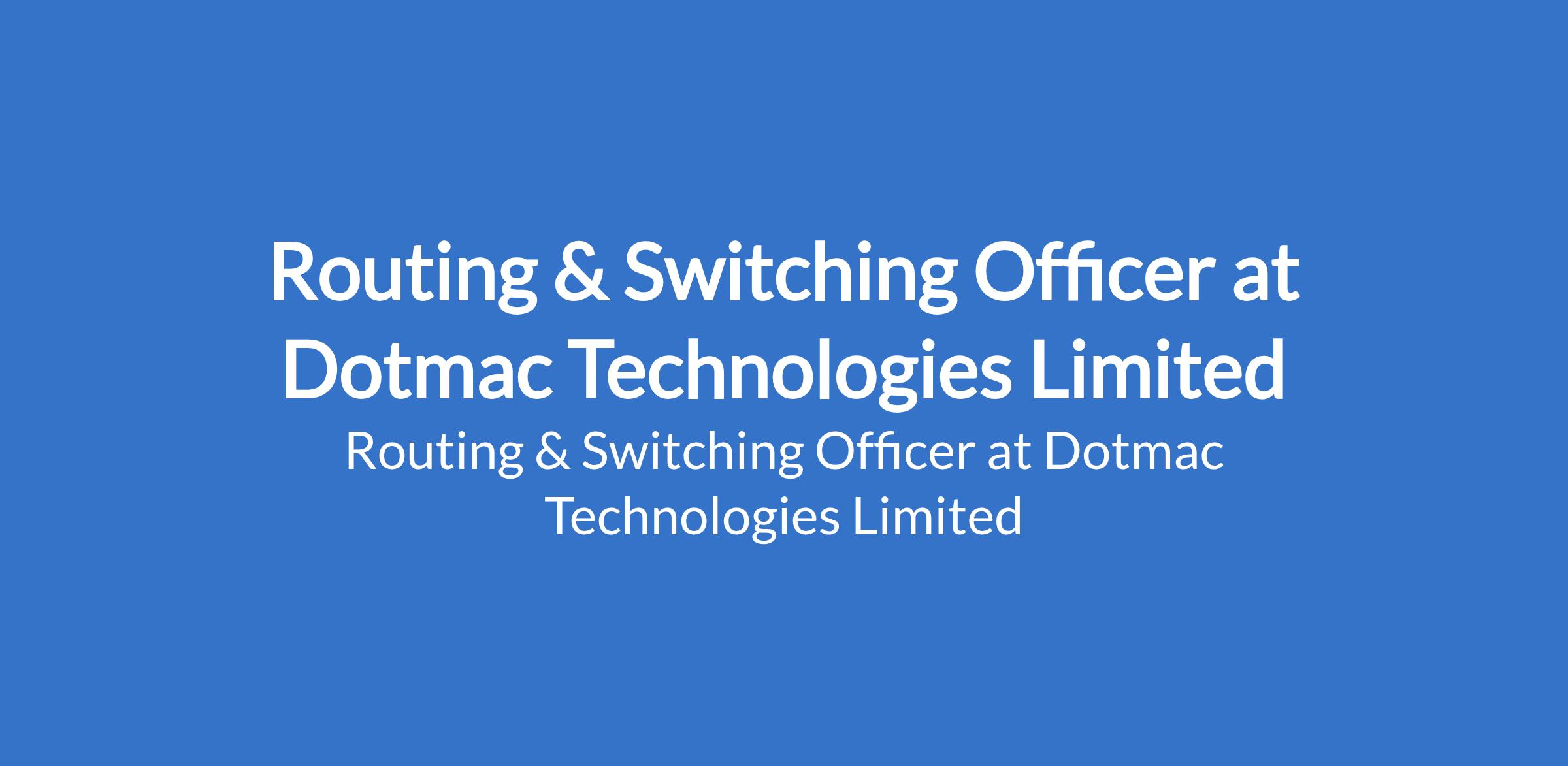 Dotmac Technologies Limited is recruiting to fill the position of: Routing & Switching Officer. The position is located in Lagos State. Interested candidates must be an OND and HND students needing industrial training or internship placement or NYSC corp members looking for PPA placement in a technical role.