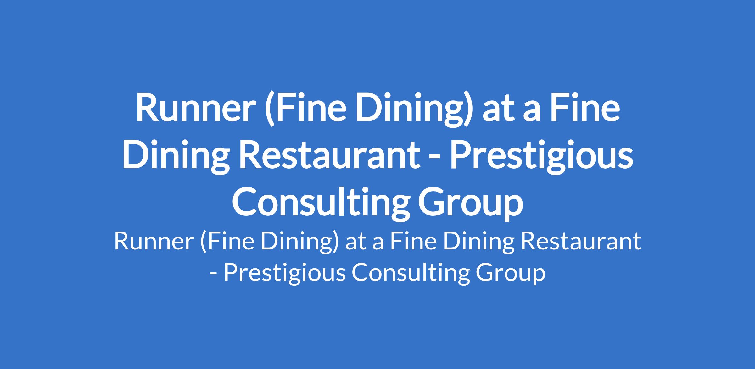 Prestigious Consulting Group - Our client, a Fine Dining Restaurant is recruiting to fill the position of: Runner. The position is located in Lekki Phase 1, Lagos State. Salary: N90,000 N110,000 monthly. Interested candidates should possess relevant qualifications with 2 - 5 years of experience.