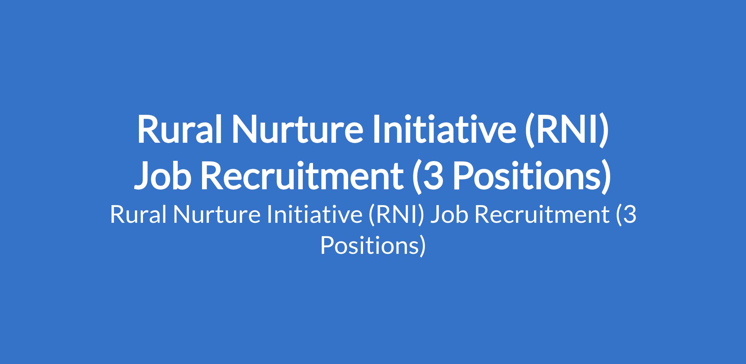 Rural Nurture Initiative (RNI) is recruiting suitable candidates to fill the following positions: Volunteer - Climate-Smart Agriculture and Food Security; Volunteer - Gender, Youth and Economic Empowerment; and Volunteer - Health Systems and Water Sustainability.