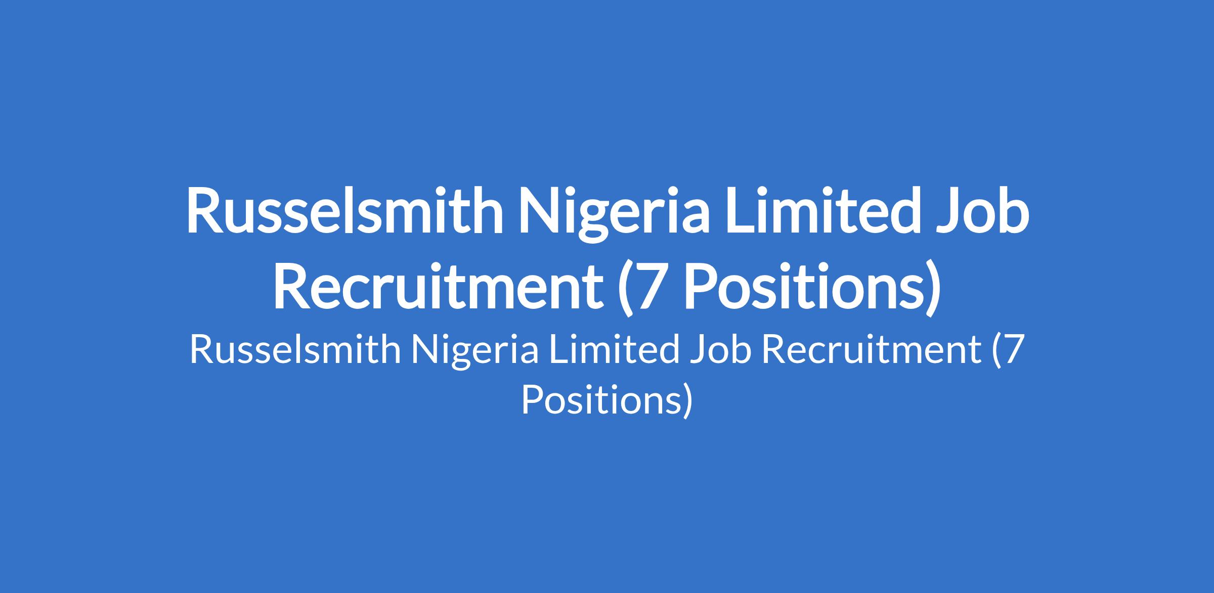 Russelsmith Nigeria Limited is currently recruiting suitable candidates to fill the following positions in Lagos State: Site Project Manager, Project Engineer, Business Strategy Analyst, Content Writer, IT Support Officer, Assistant Manager - IT Solution, & Business Development Executive.