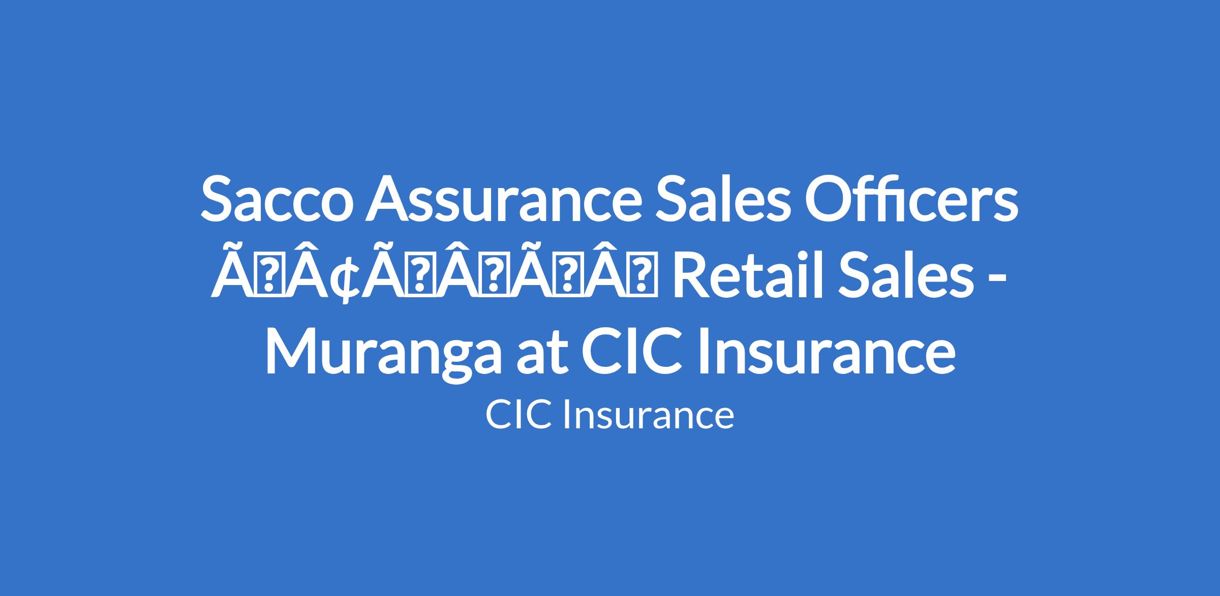 Sacco Assurance Sales Officers âÃÂàRetail Sales - Muranga at CIC Insurance