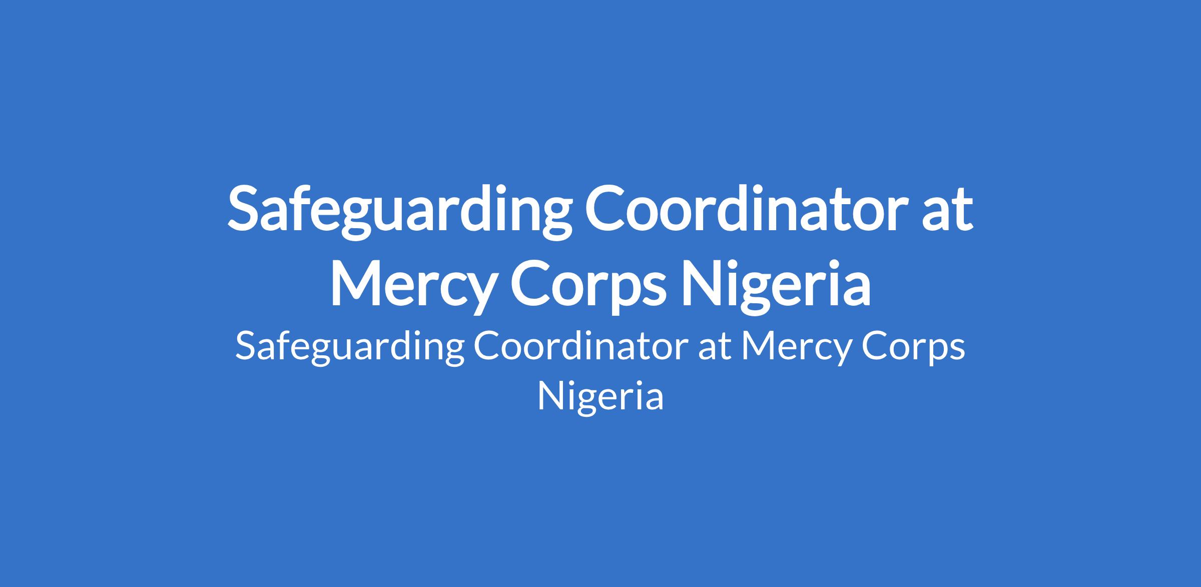 Mercy Corps Nigeria is recruiting to fill the position of: Safeguarding Coordinator. The position is located in Maiduguri, Borno State. Interested candidates should possess a Bachelor's Degree in Social Work, Communications, Law, Education or relevant professional qualifications with 2-4 years relevant work experience.