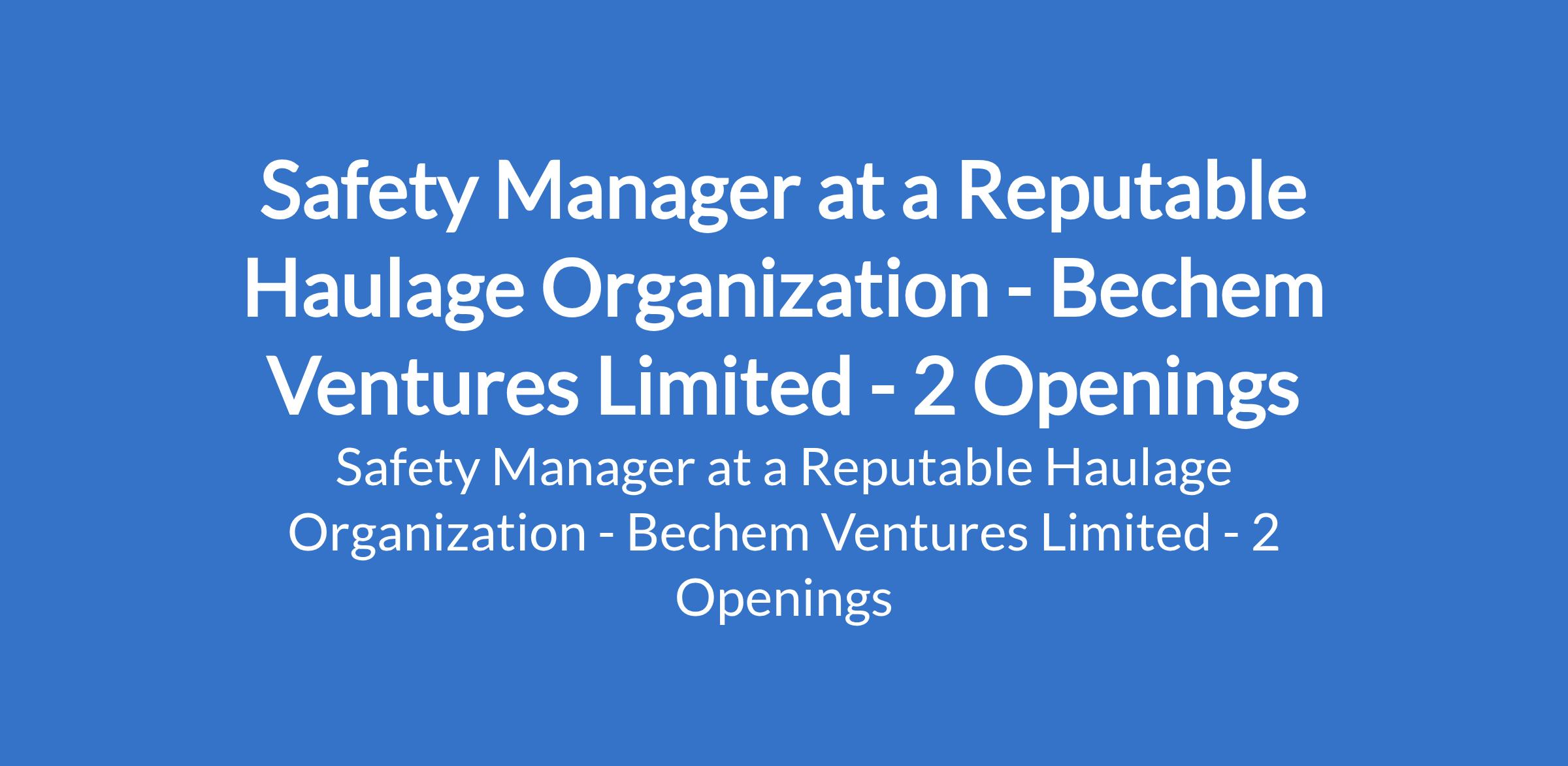 Bechem Ventures Limited - Our client, a Reputable Haulage Organization is recruiting to fill the position of: Safety Manager. The position is located in Calabar - Cross River, and Lagos States. Salary Range: N150,000 N500,000 per month. Interested candidates should possess relevant qualifications with experience.