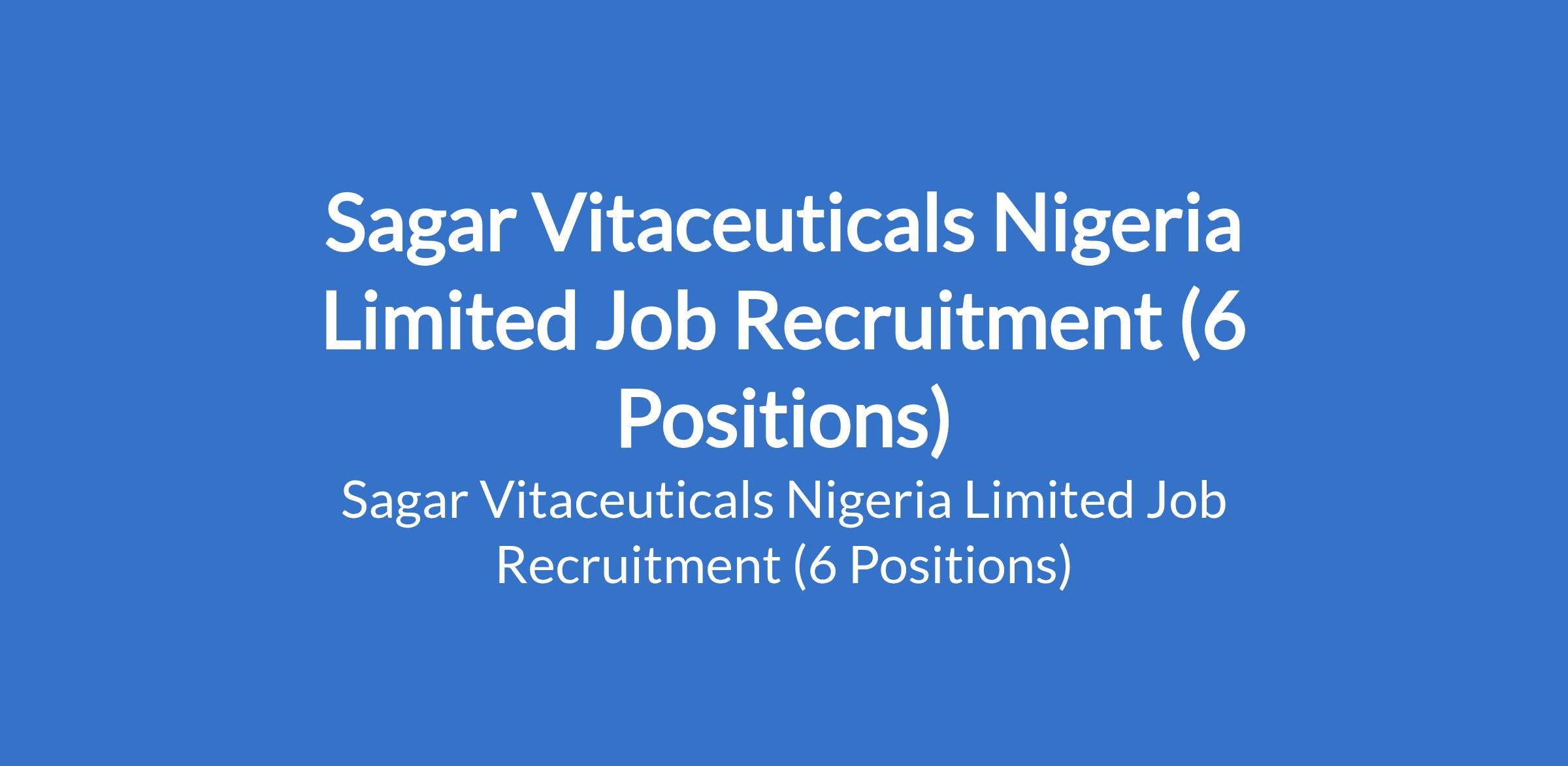 Sagar Vitaceuticals Nigeria Limited is currently seeking applications from suitably qualified candidates to fill the following positions in Ogun State: Machine Operator, Electrical Engineer, Partition Officer, Liquid Filling Operator, Blistering Operator, and Capsule Filling Operator.