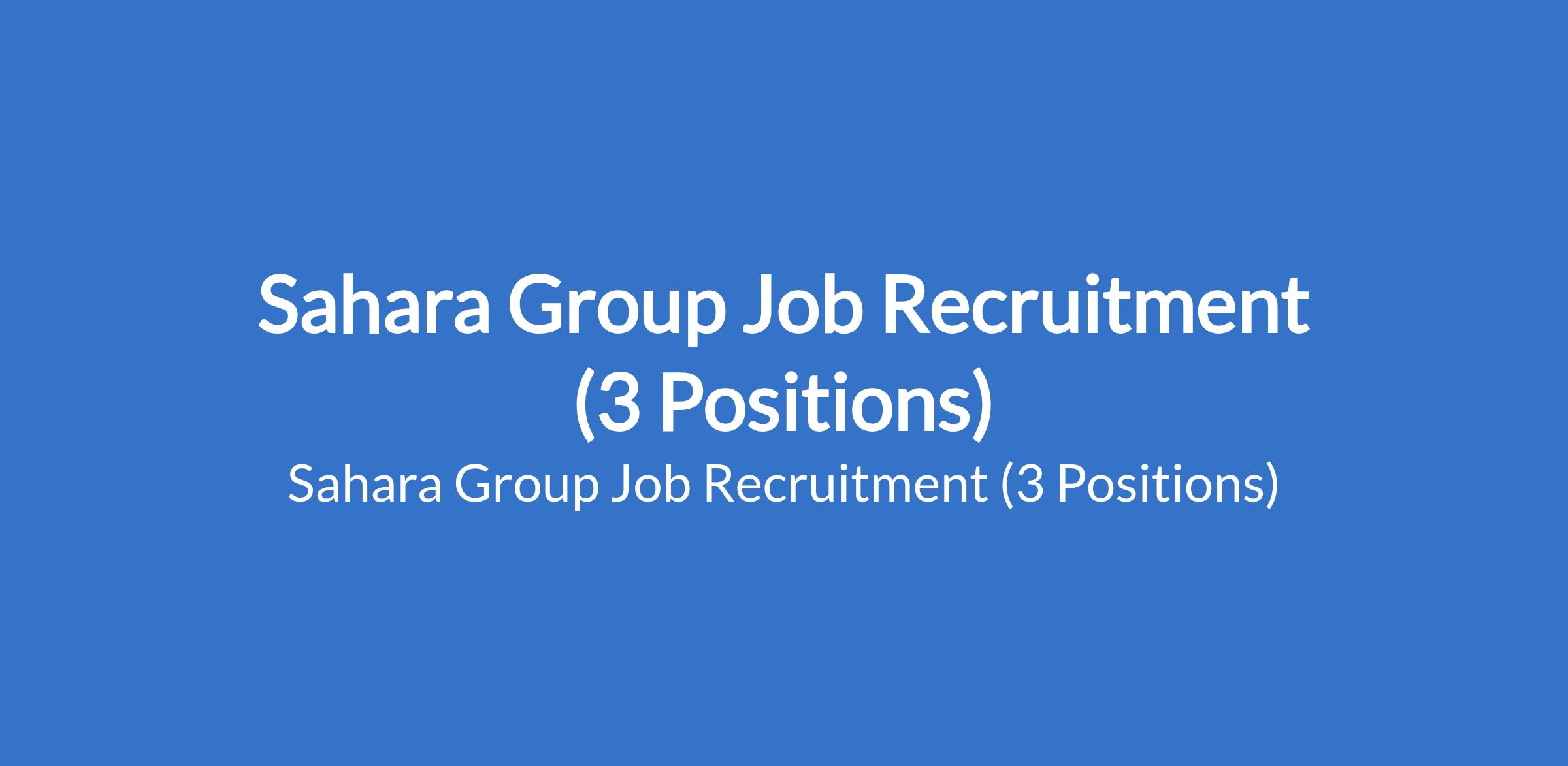 Sahara Group Job Recruitment (3 Positions)