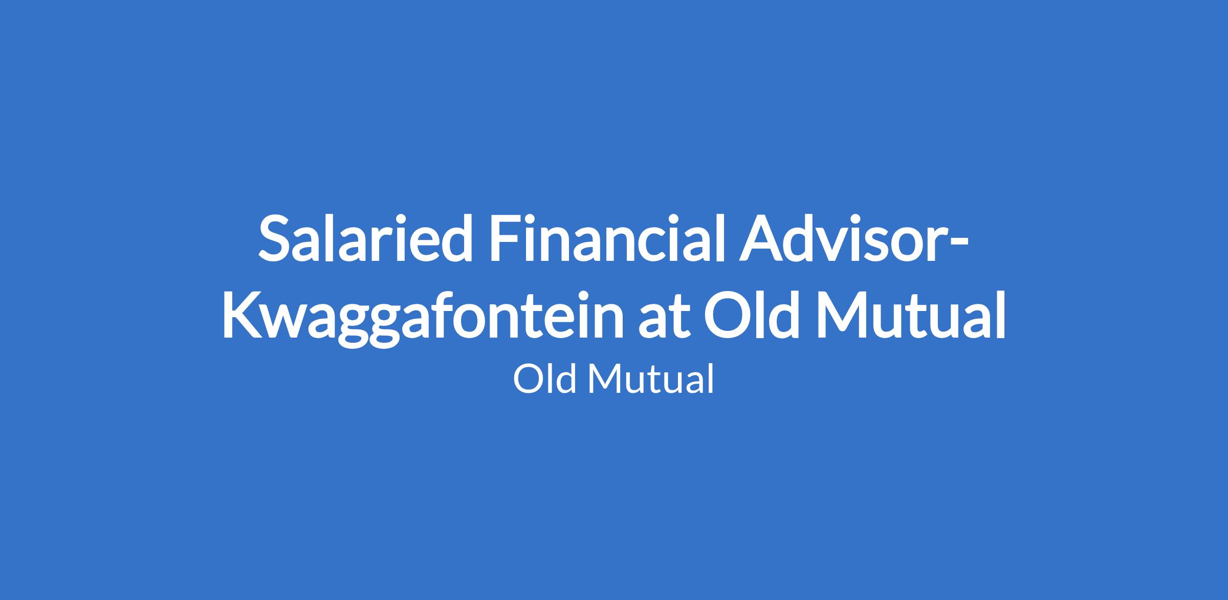 Salaried Financial Advisor- Kwaggafontein at Old Mutual