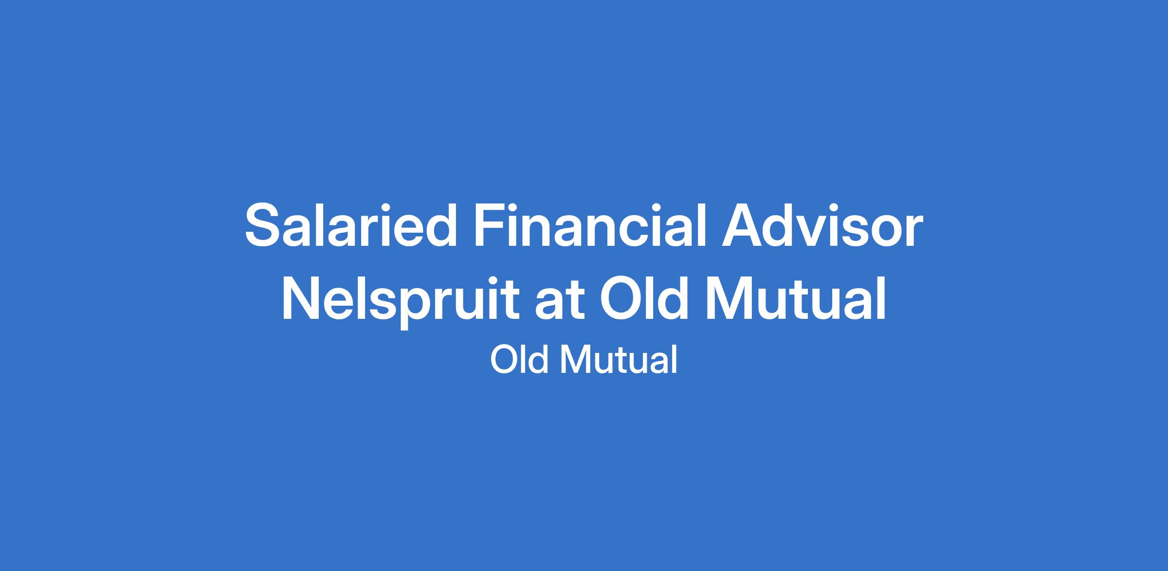 Salaried Financial Advisor Nelspruit at Old Mutual