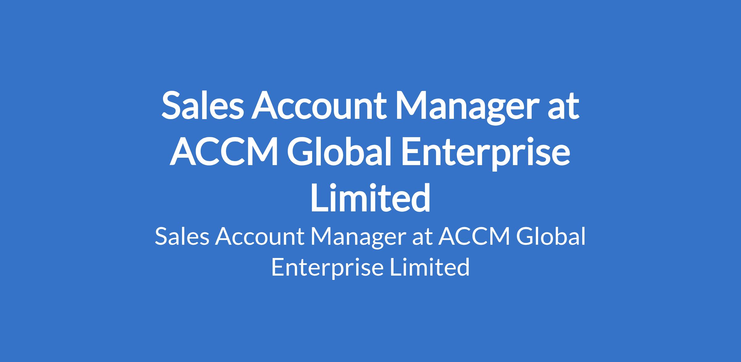 ACCM Global Enterprise Limted is recruiting to fill the position of: Sales Account Manager. The position is located in Lagos State. Interested candidates should possess a Bachelors Degree or HND in Finance, Economics, Business Administration, or a related field from a reputable university with a minimum of 2-years FX Sales experience.