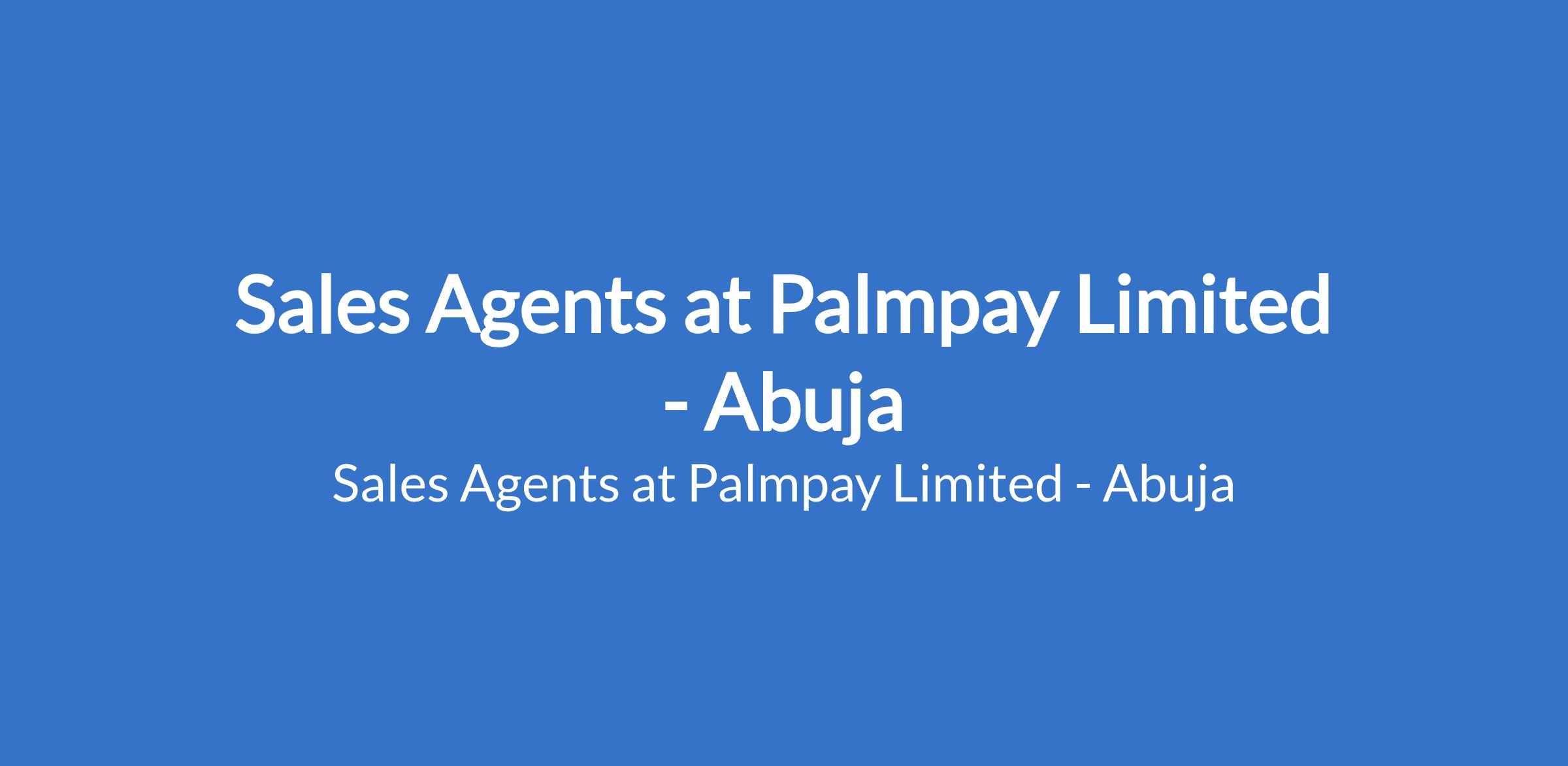 PalmPay Limited is recruiting to fill the position of: Sales Agent. The position is located in Abuja. Salary: N70,000 per month. Interested candidates should have a minimum of an OND, NCE, or equivalent qualification with prior experience in sales, field marketing, retail banking, or telecom product sales.