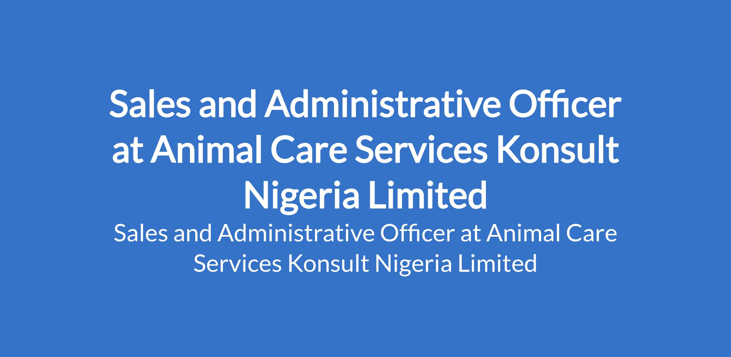 Animal Care Services Konsult Nigeria Limited is recruiting to fill the position of: Sales and Administrative Officer. The position is located in Ibadan, Oyo State. Interested candidates should possess a Bachelors Degree or HND qualification in Animal Science, Veterinary Medicine, Agricultural Science or related fields with 3 - 5 years experience in sales of animal feeds or veterinary products.