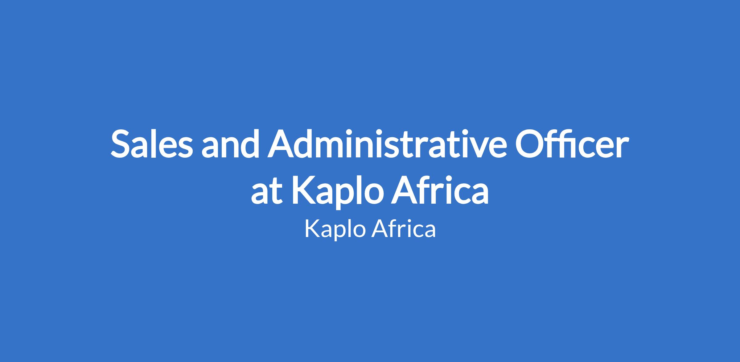 Sales and Administrative Officer at Kaplo Africa