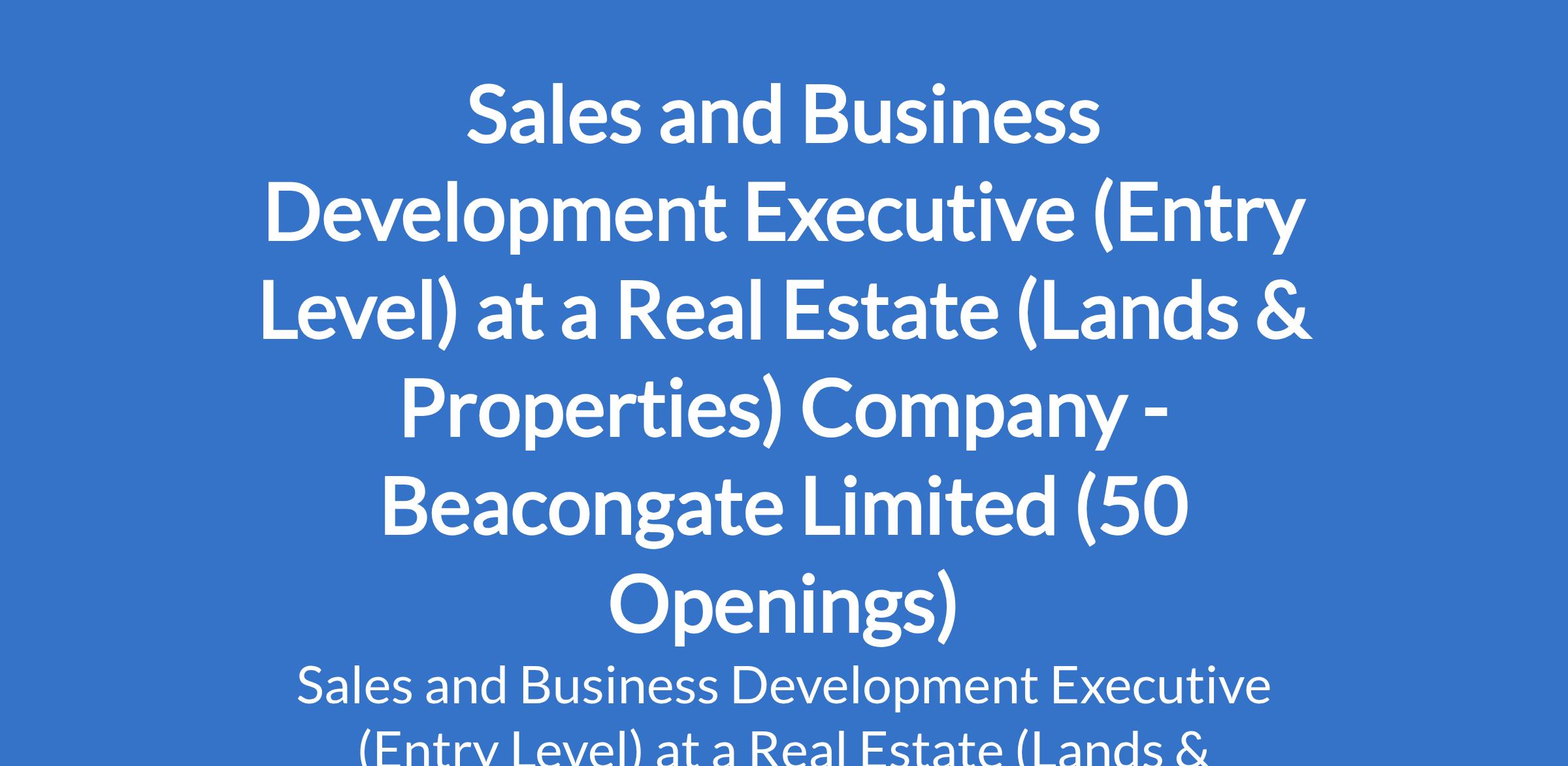 Beacongate Limited - Our client in the Real Estate (Lands & Properties) industry is recruiting to fill the position of: Sales and Business Development Executive (Entry Level). The position is located in Ikeja, Victoria Island, Ikorodu - Lagos & Mowe - Ogun States. Salary: N130,000 - N150,000 monthly. The ideal candidate will be responsible for selling estate properties and lands for development, building strong client relationships, and executing strategic sales initiatives to expand market presence. Interested candidates should possess a Bachelors Degree in a relevant field with 1 - 2 years of sales/business development experience; real estate is an added advantage.