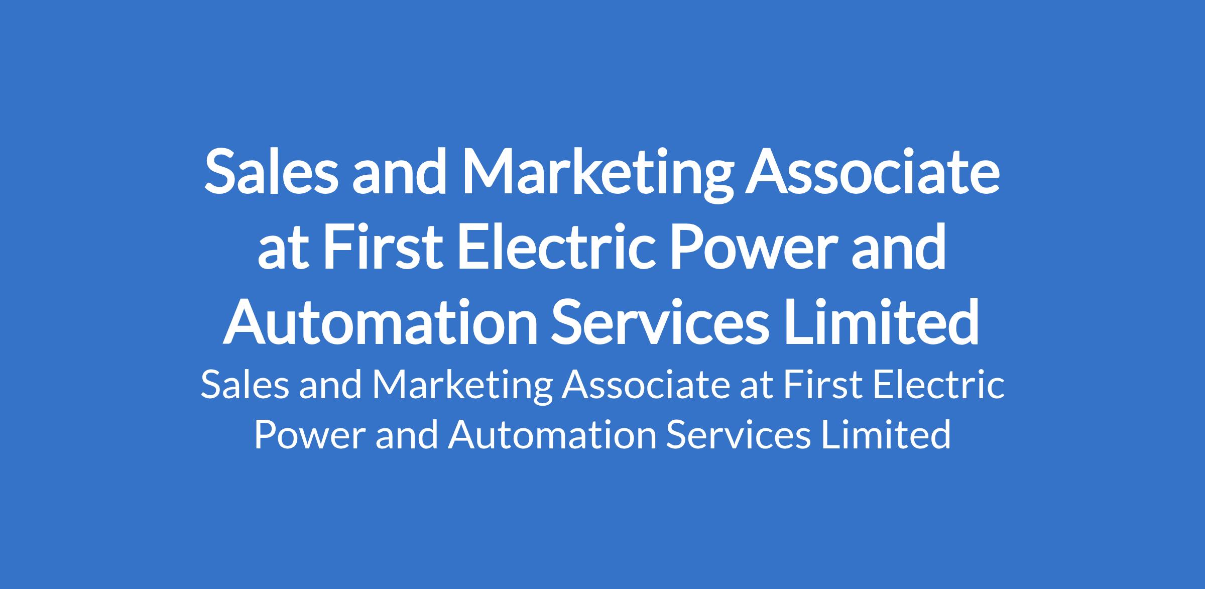 First Electric Power and Automation Services Limited is recruiting to fill the position of: Sales and Marketing Associate. The position is located in Ajah, Lagos State. Salary: N200,000 - N250,000 monthly. Interested candidates should possess an HND, or B.Sc. in Marketing or a related field with 2 years proven work experience as a Sales and Marketing Associate in the Renewable Energy industry.