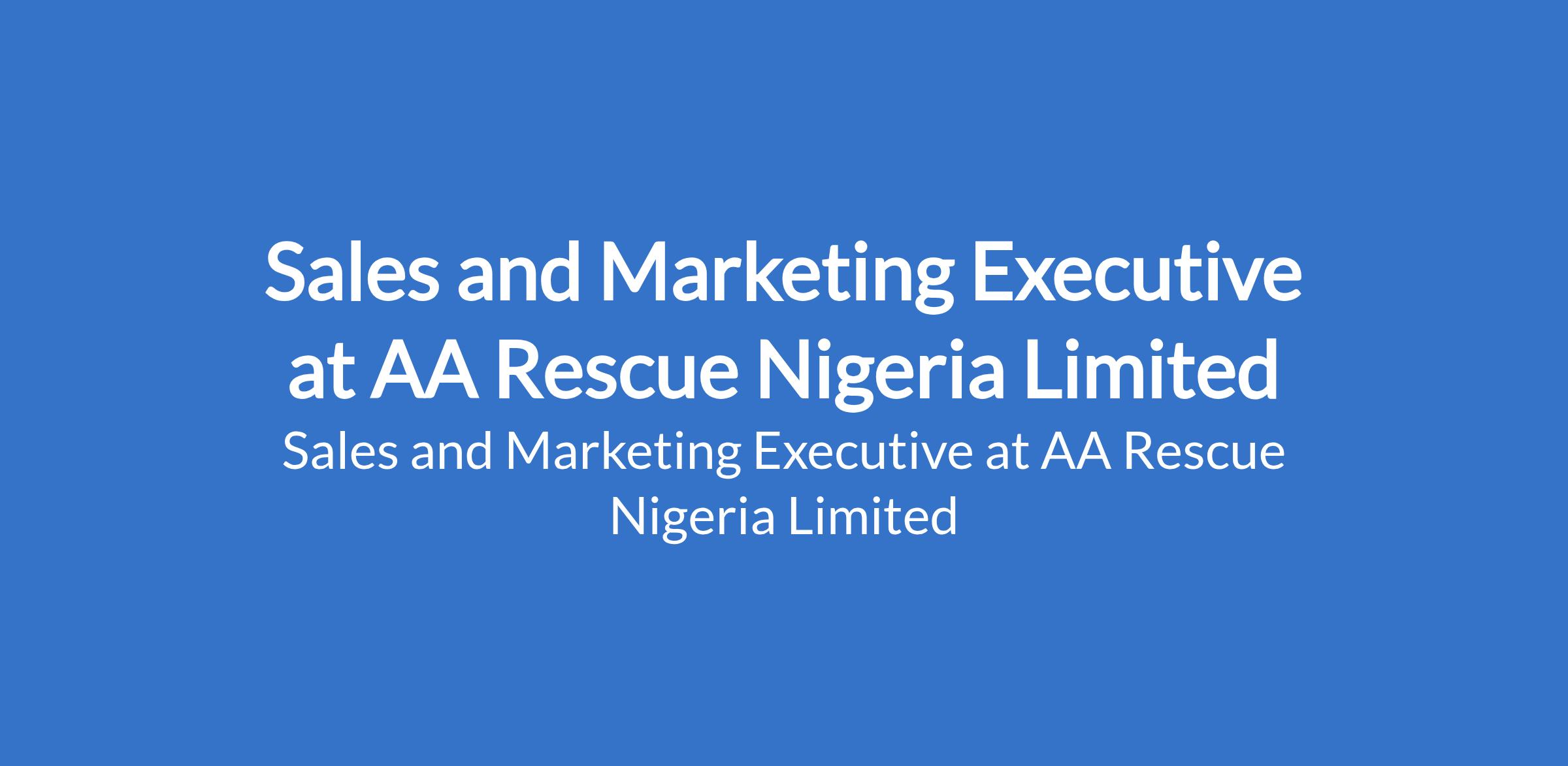 AA Rescue Nigeria Limited is recruiting to fill the position of: Sales and Marketing Executive. The position is located in Lagos State. Salary: N150,000 - N180,000 / month. Interested candidates should possess a Bachelor's Degree / HND with 1 - 2 years of experience as a Sales Executive or relevant role.