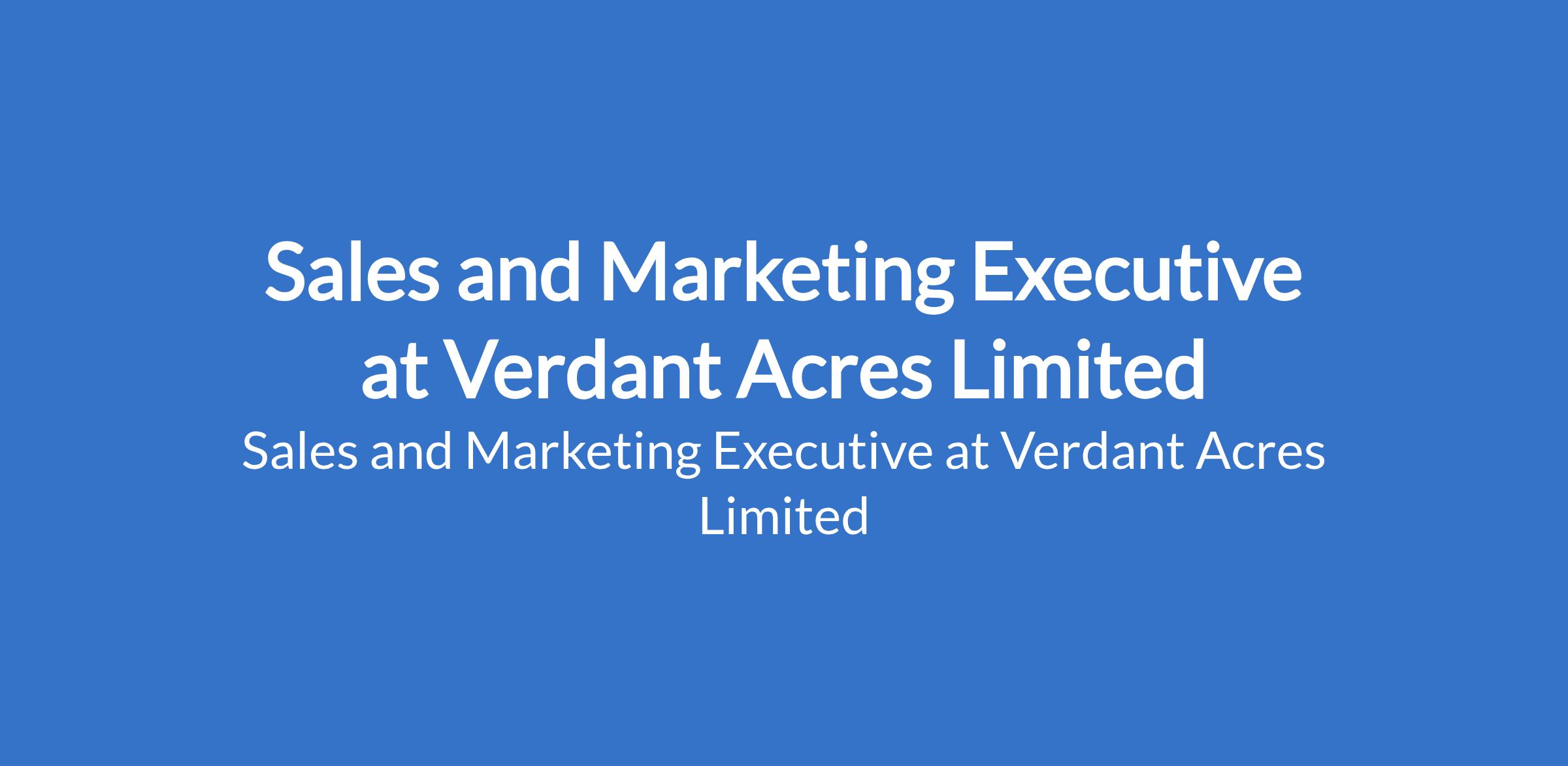 Sales and Marketing Executive at Verdant Acres Limited