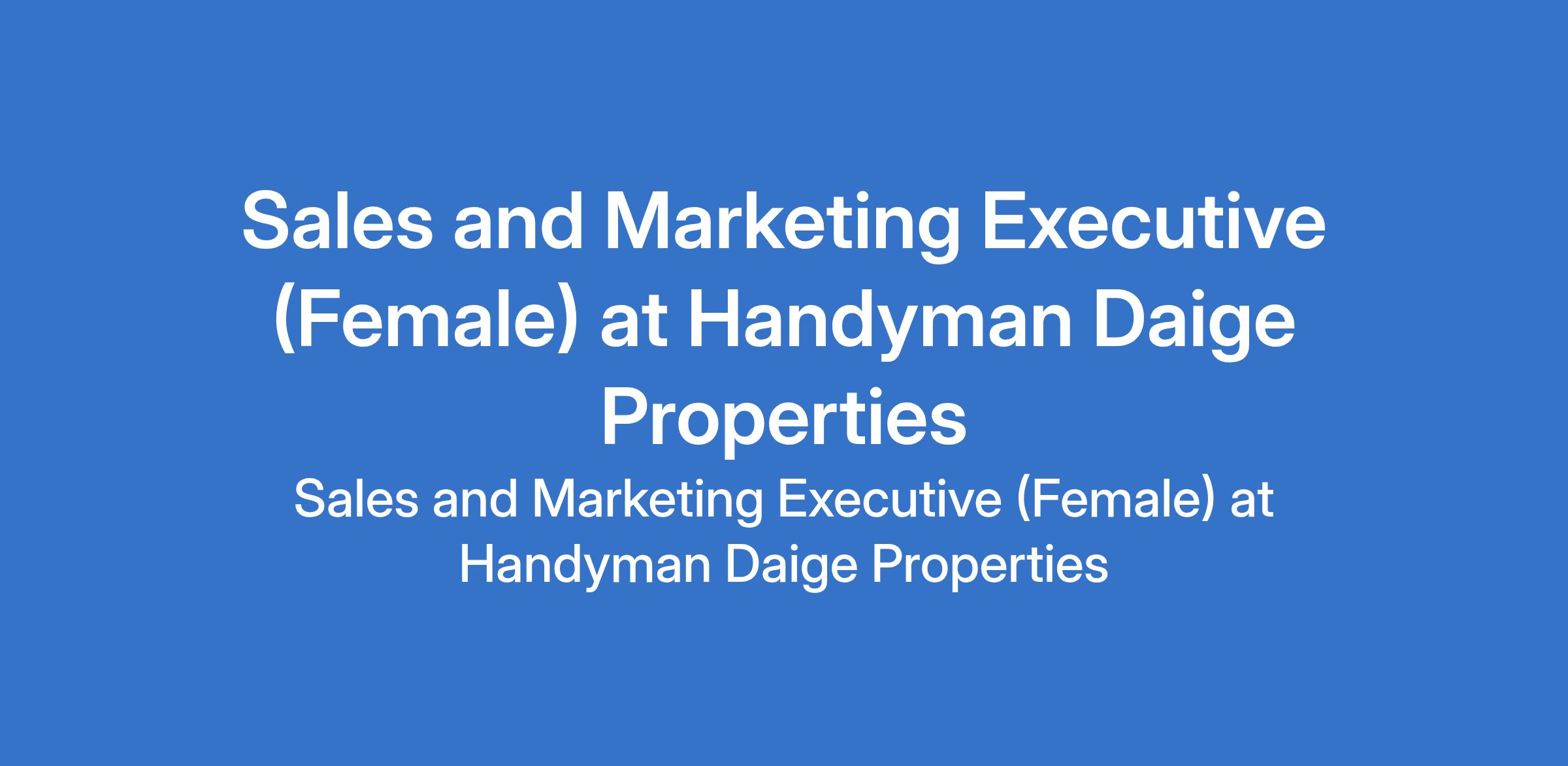 Handyman Daige Properties is recruiting to fill the position of: Sales and Marketing Executive (Female). The position is located in Abuja (FCT). Interested candidates should possess a B.Sc. Degree in Marketing or any related field from a recognized University with 3-5 years proven experience in sales/marketing and customer service post NYSC.