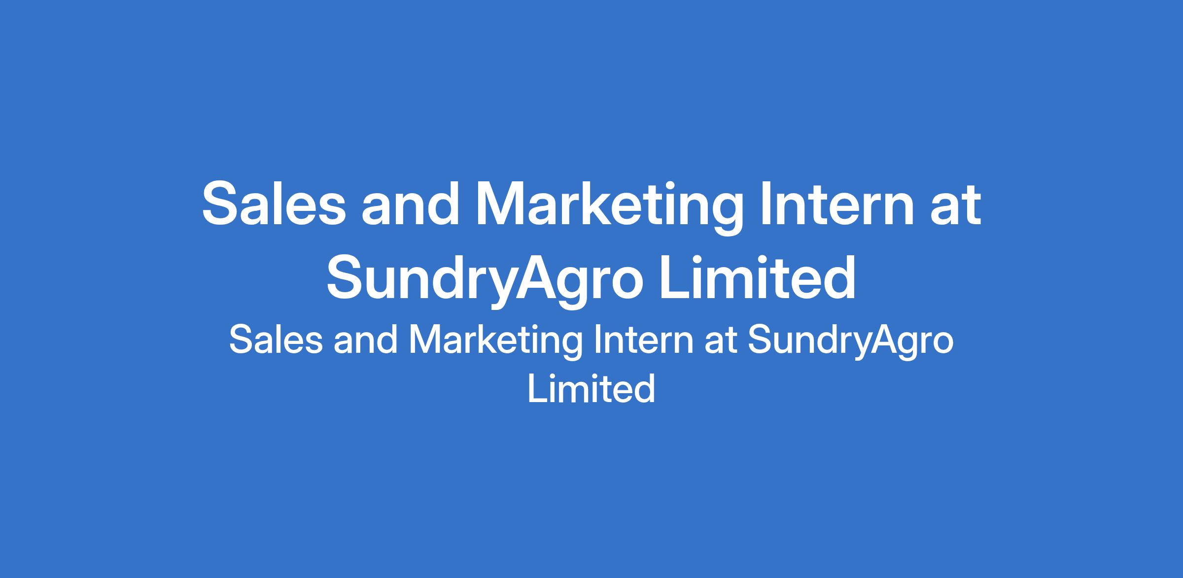 SundryAgro Limited is recruiting to fill the position of: Sales and Marketing Intern. The position is located in Ikeja, Lagos State. Interested candidates should possess an HND / OND / B.Sc Degree with 0 - 2 years experience.
