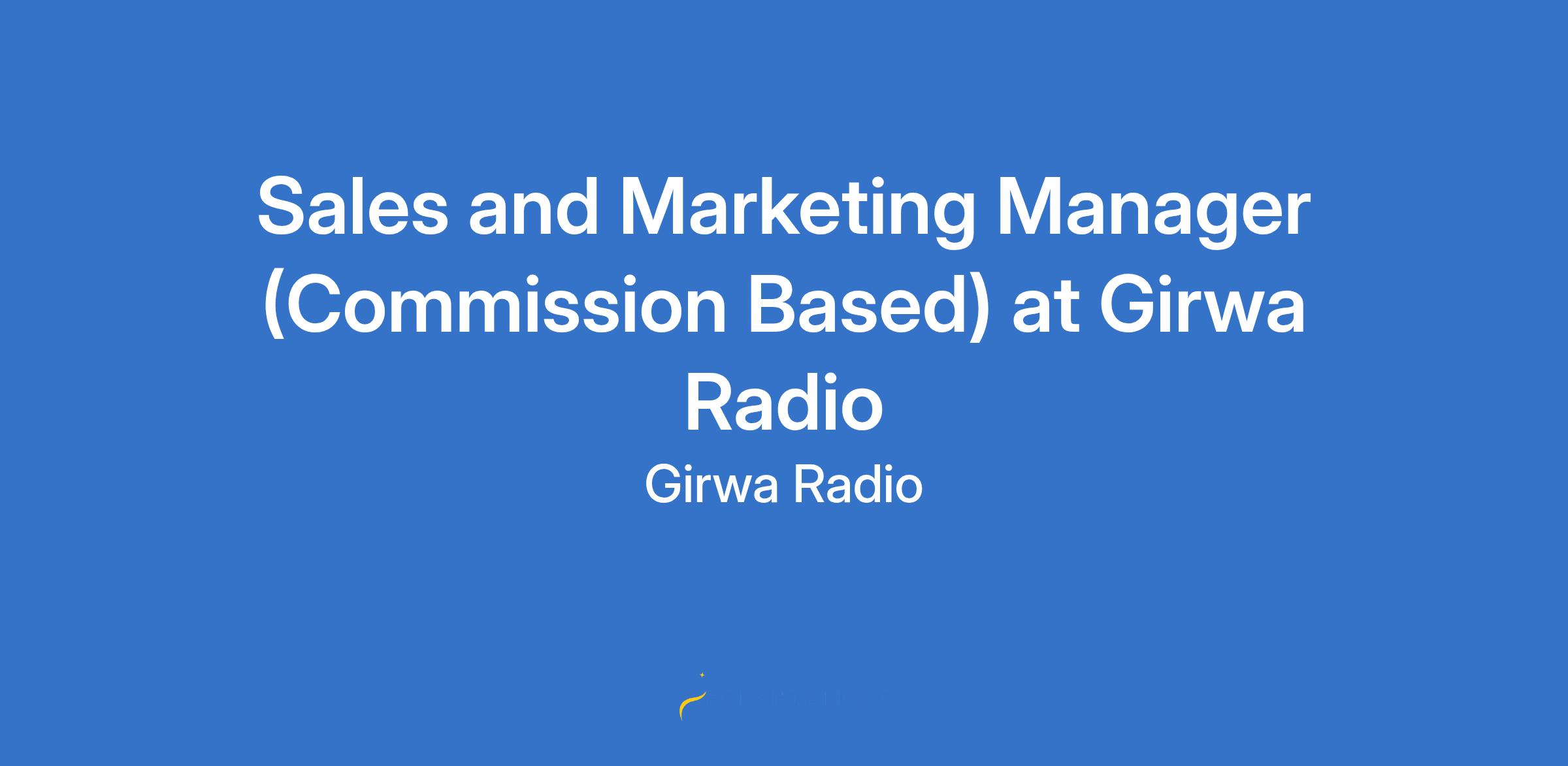 Sales and Marketing Manager (Commission Based) at Girwa Radio