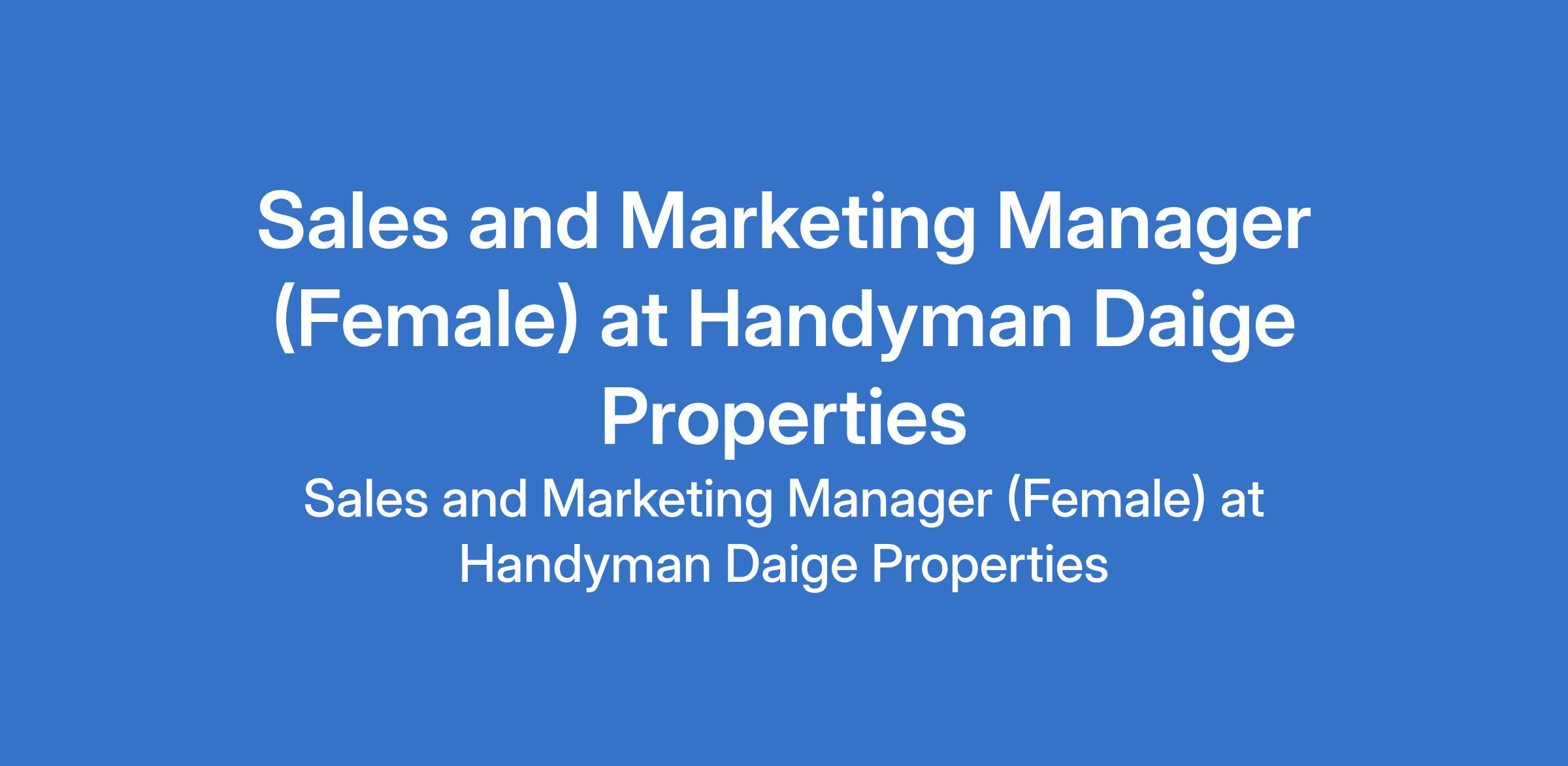 Handyman Daige Properties is recruiting to fill the position of: Sales and Marketing Manager (Female). The position is located in Abuja (FCT). Interested candidates should possess a Bachelors Degree in any relevant field with 12-15 years experience post NYSC.