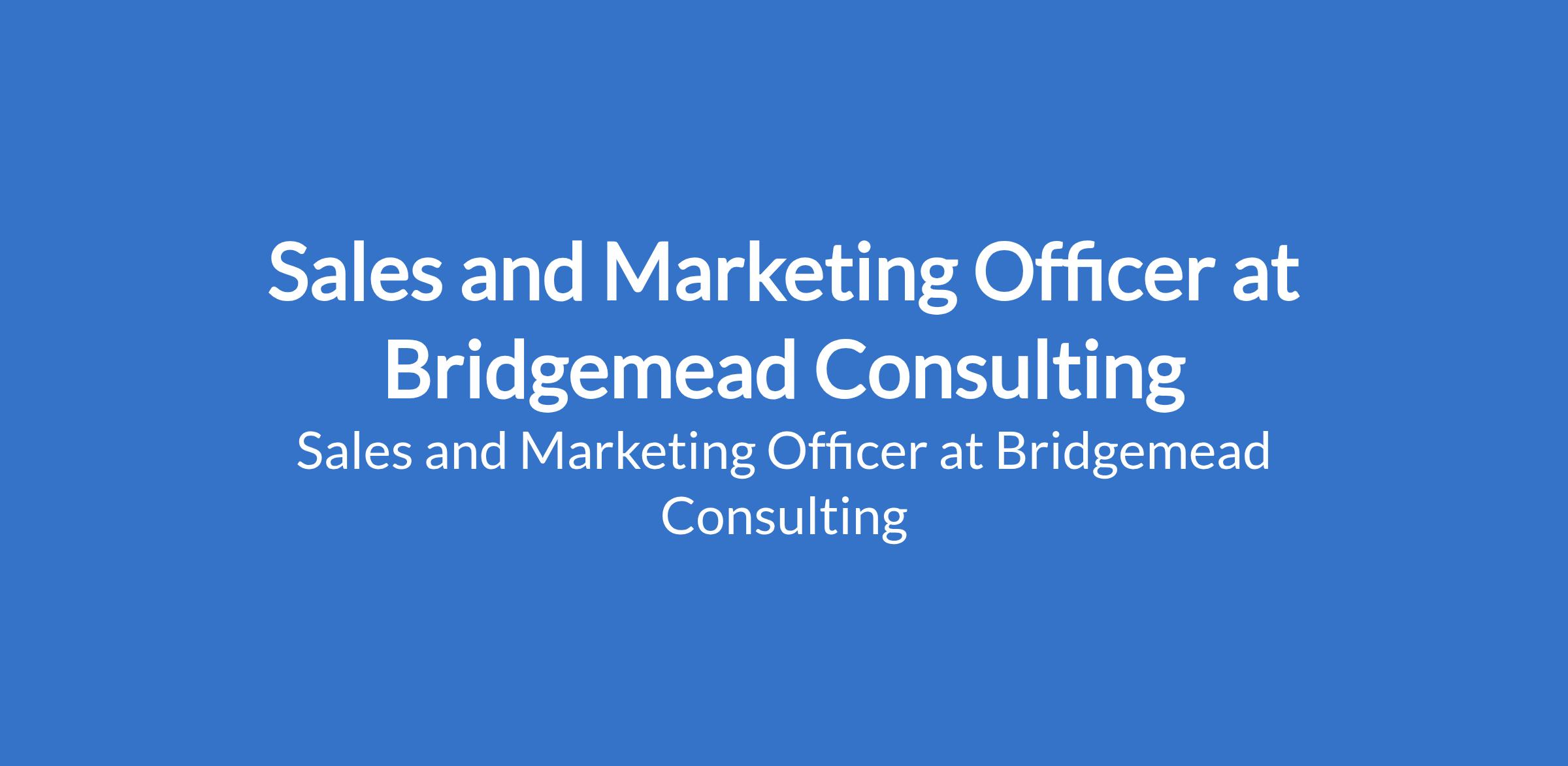 Bridgemead Consulting is recruiting to fill the position of: Sales and Marketing Officer. The position is located in Lagos State. Salary: N200,000 - N350,000 monthly. Interested candidates should possess a BSc or HND in Marketing, Business Administration, or related field with 35 years relevant experience in sales and marketing, preferably in agribusiness or FMCG.