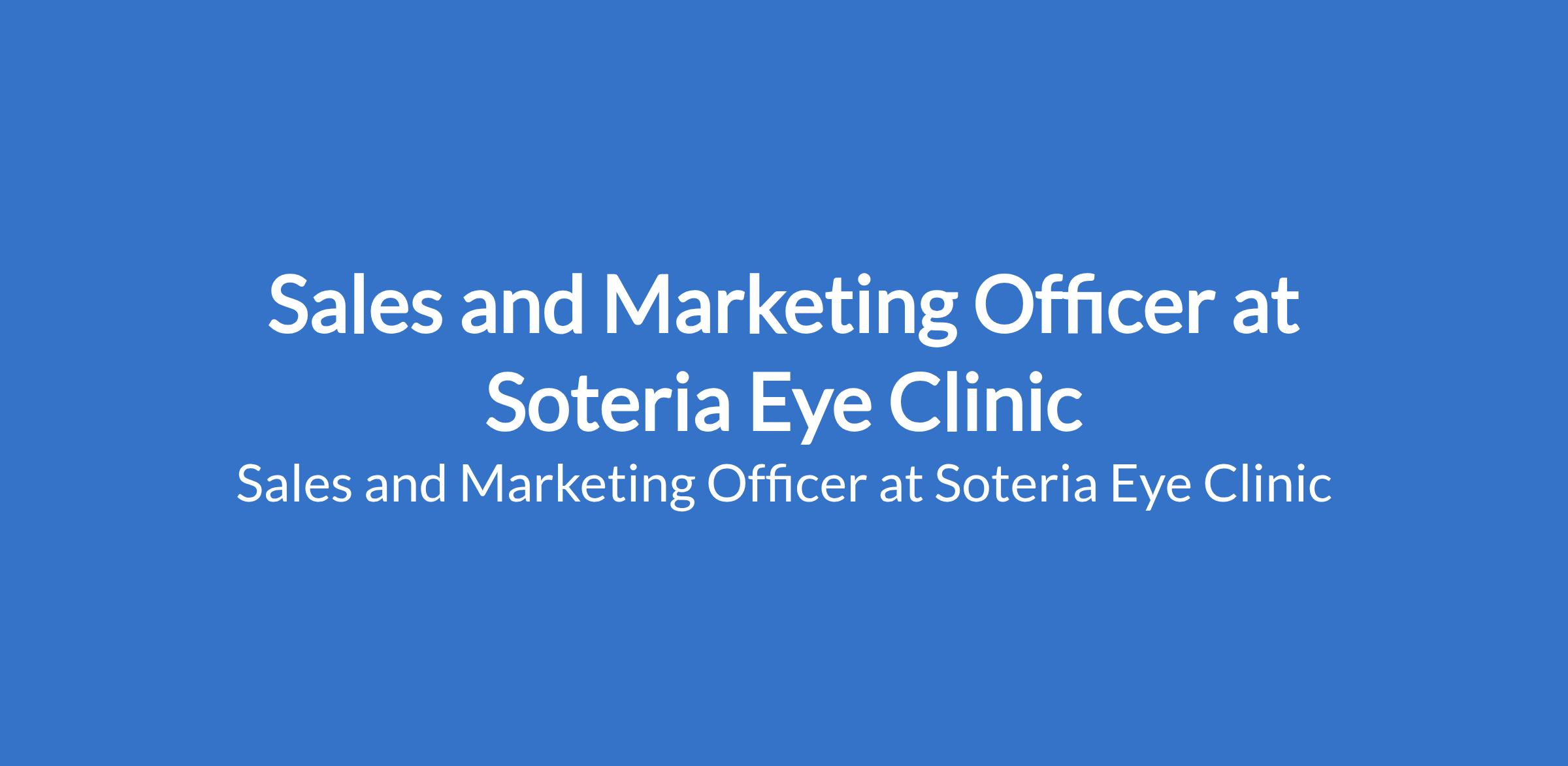 Sales and Marketing Officer at Soteria Eye Clinic