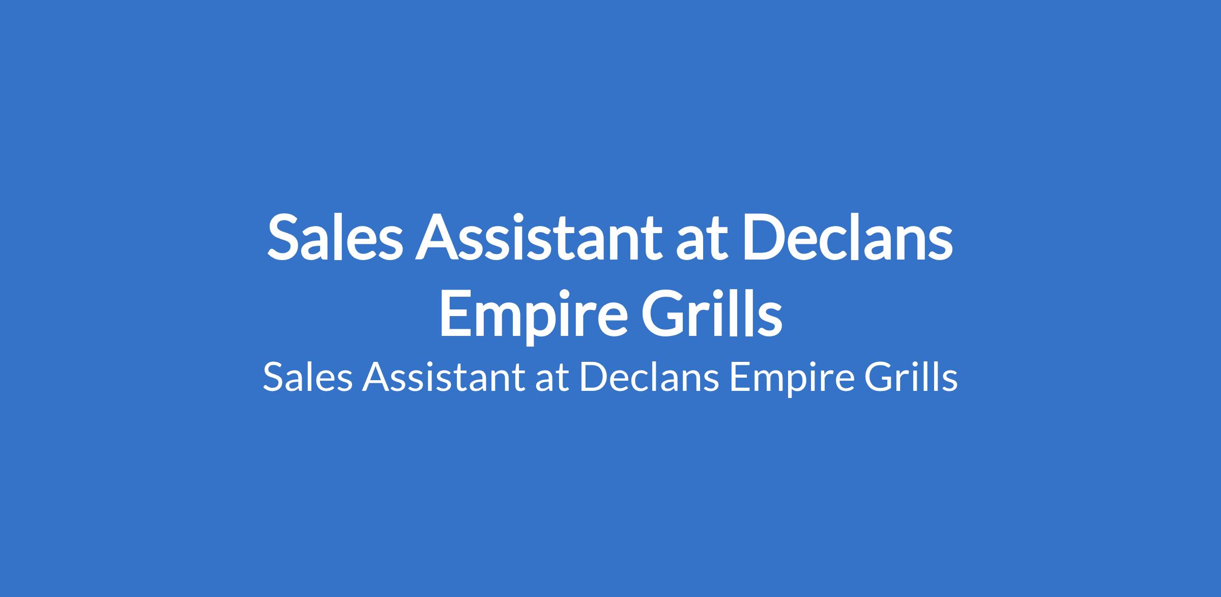 Sales Assistant at Declans Empire Grills