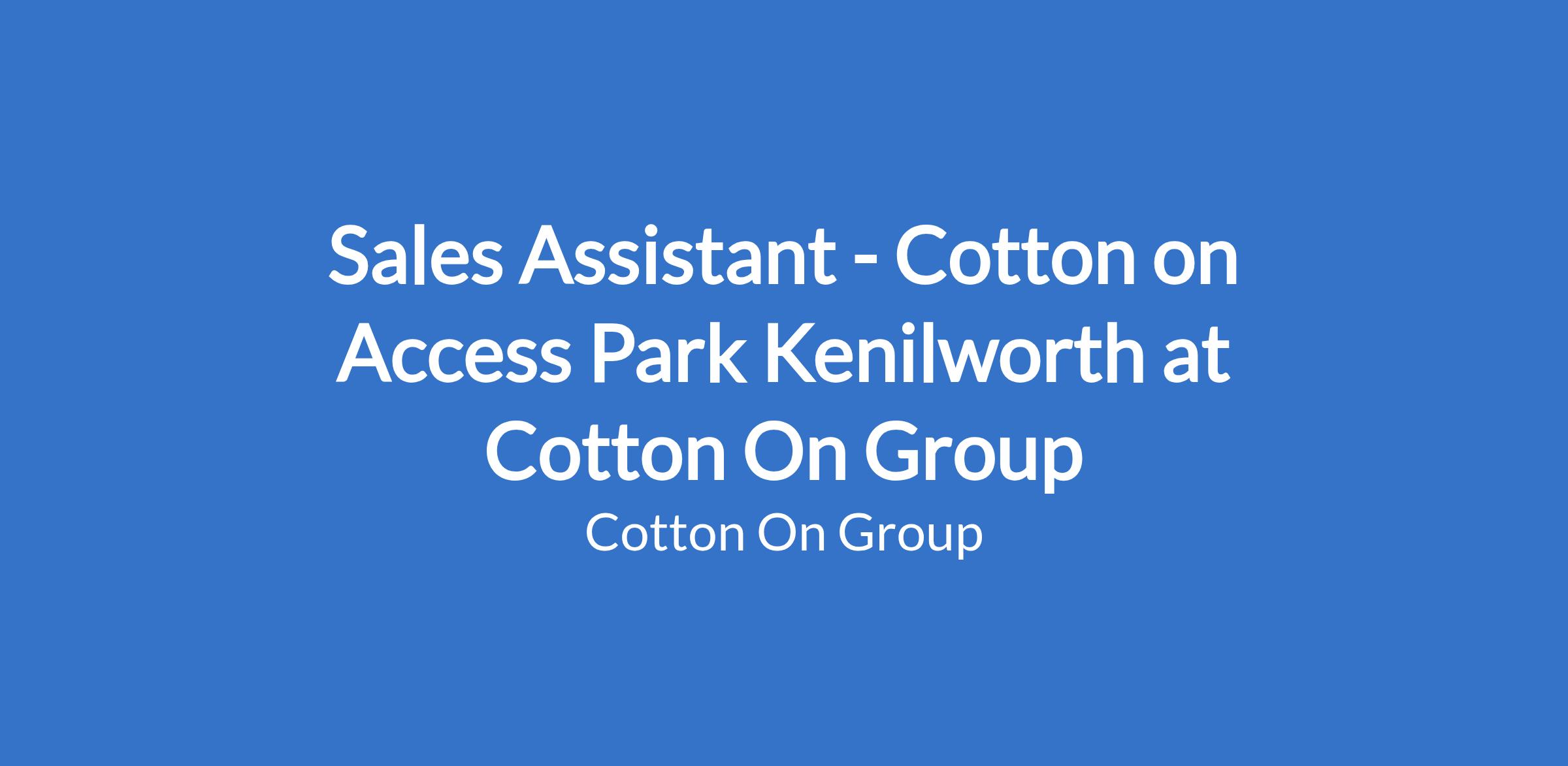 Sales Assistant - Cotton on Access Park Kenilworth at Cotton On Group