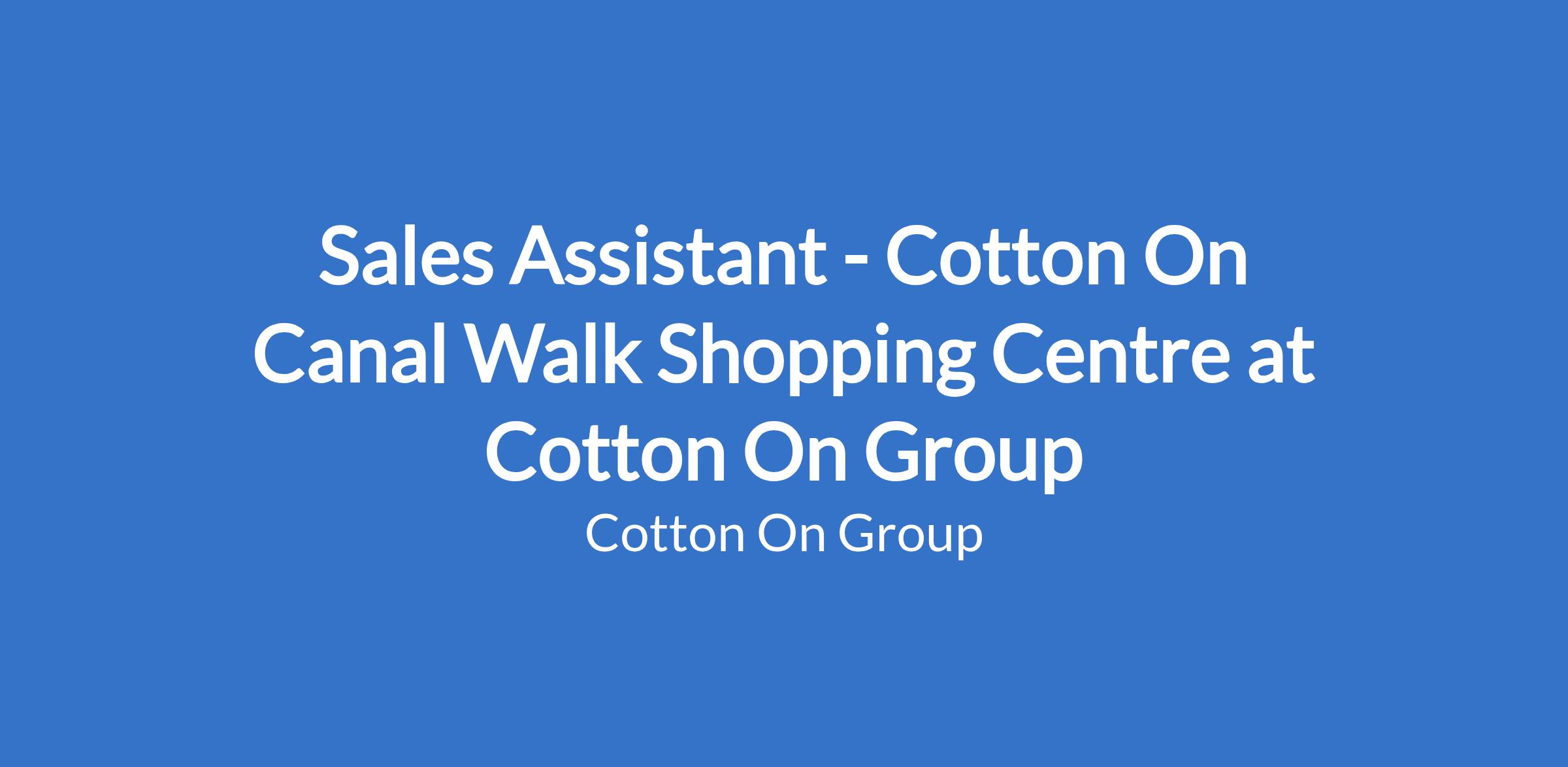 Sales Assistant - Cotton On Canal Walk Shopping Centre at Cotton On Group