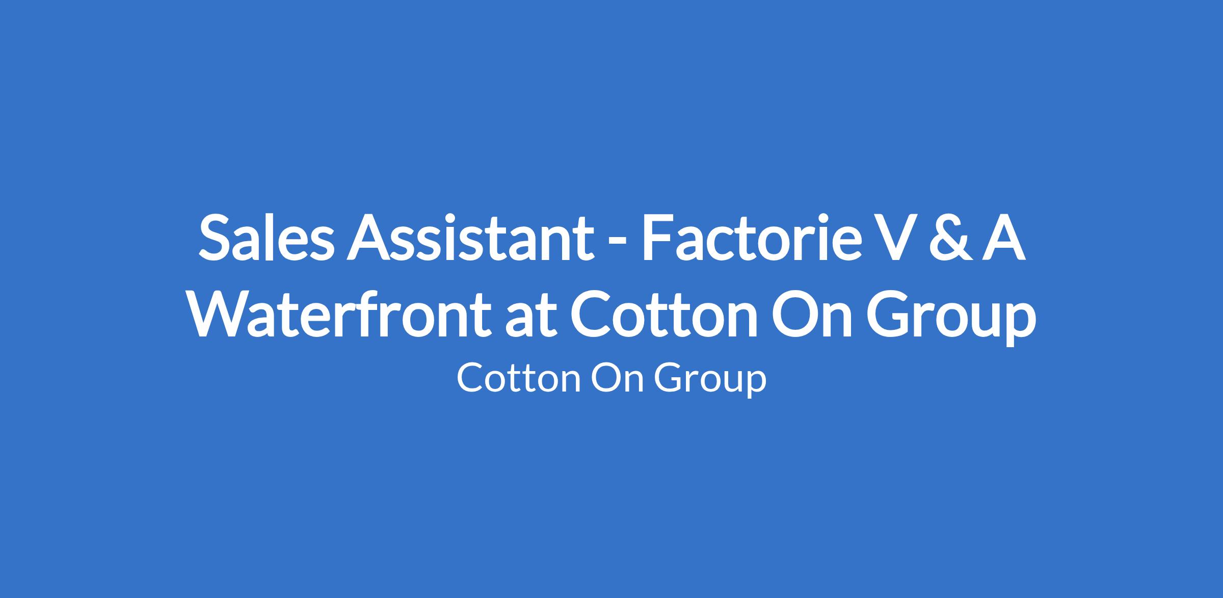 Sales Assistant - Factorie V & A Waterfront at Cotton On Group