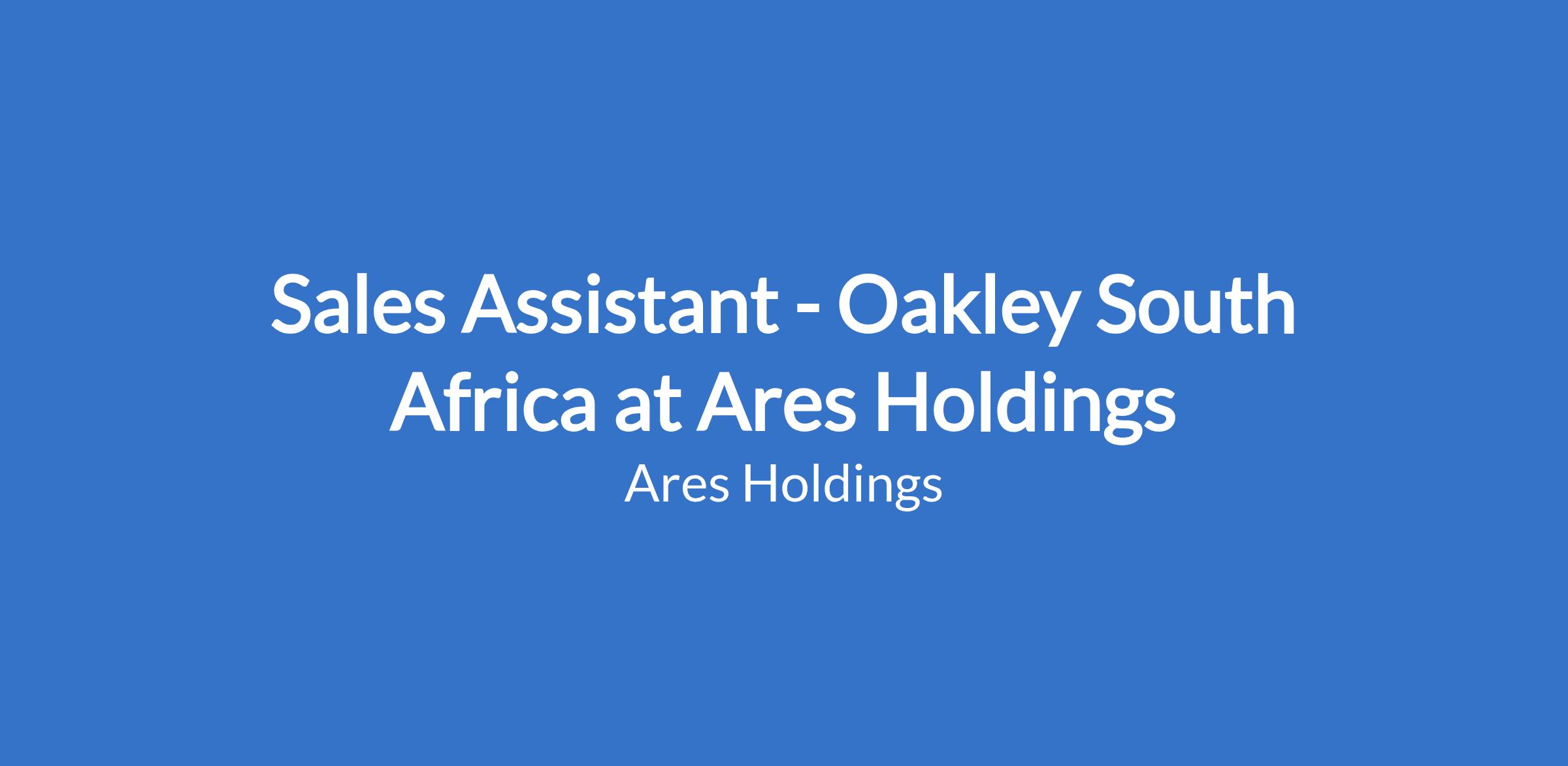 Sales Assistant - Oakley South Africa at Ares Holdings
