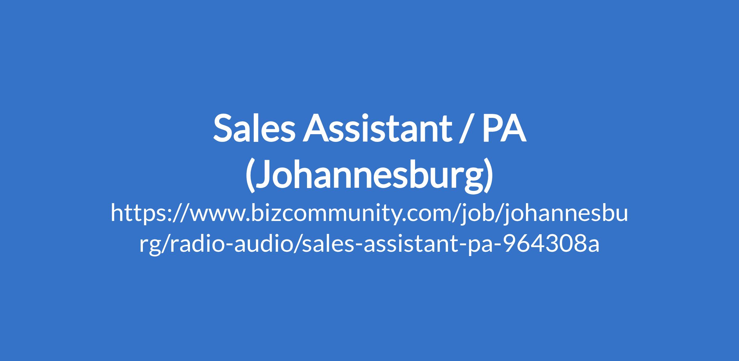 Sales Assistant / PA (Johannesburg)