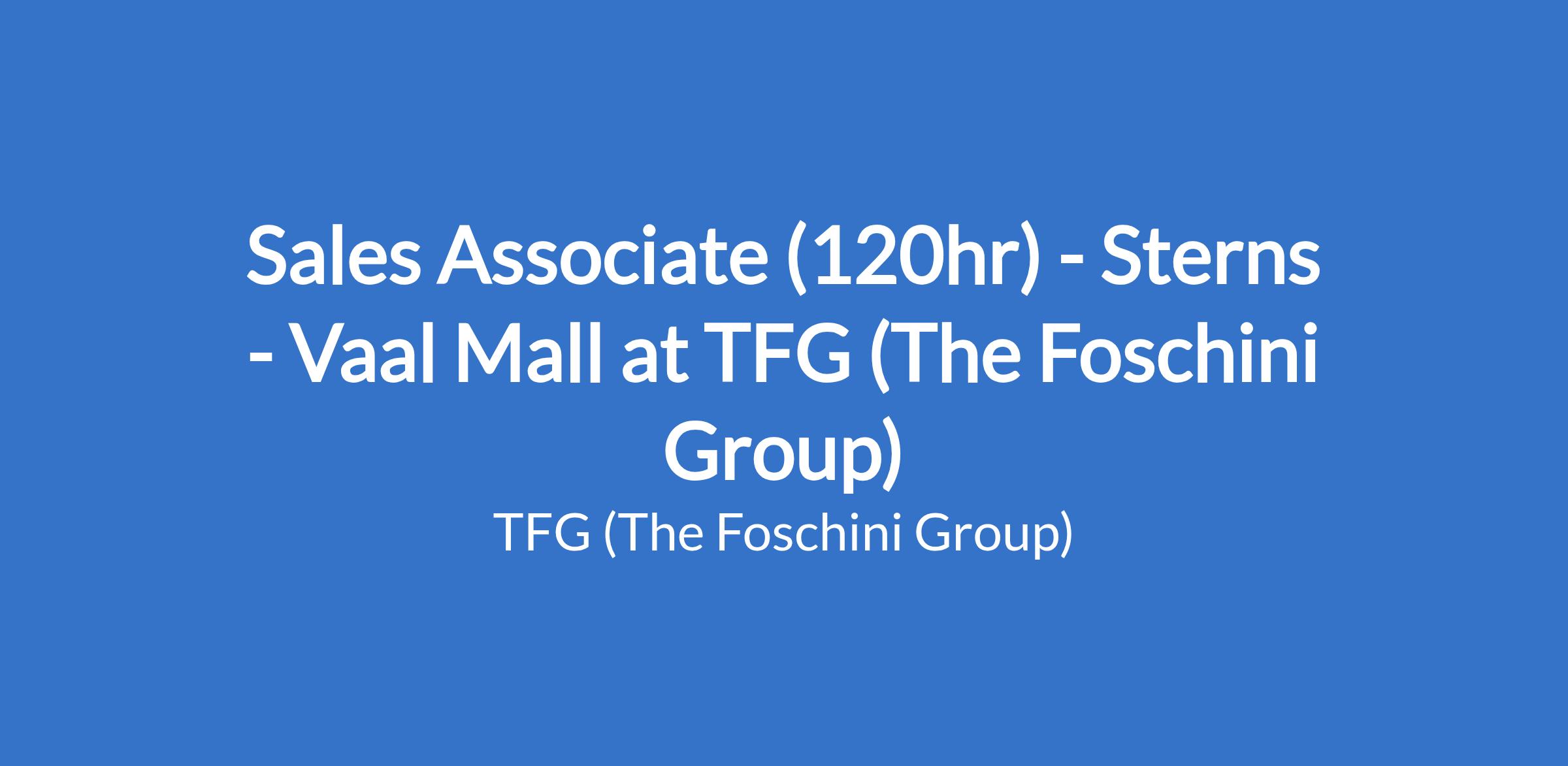 Sales Associate (120hr) - Sterns - Vaal Mall at TFG (The Foschini Group)