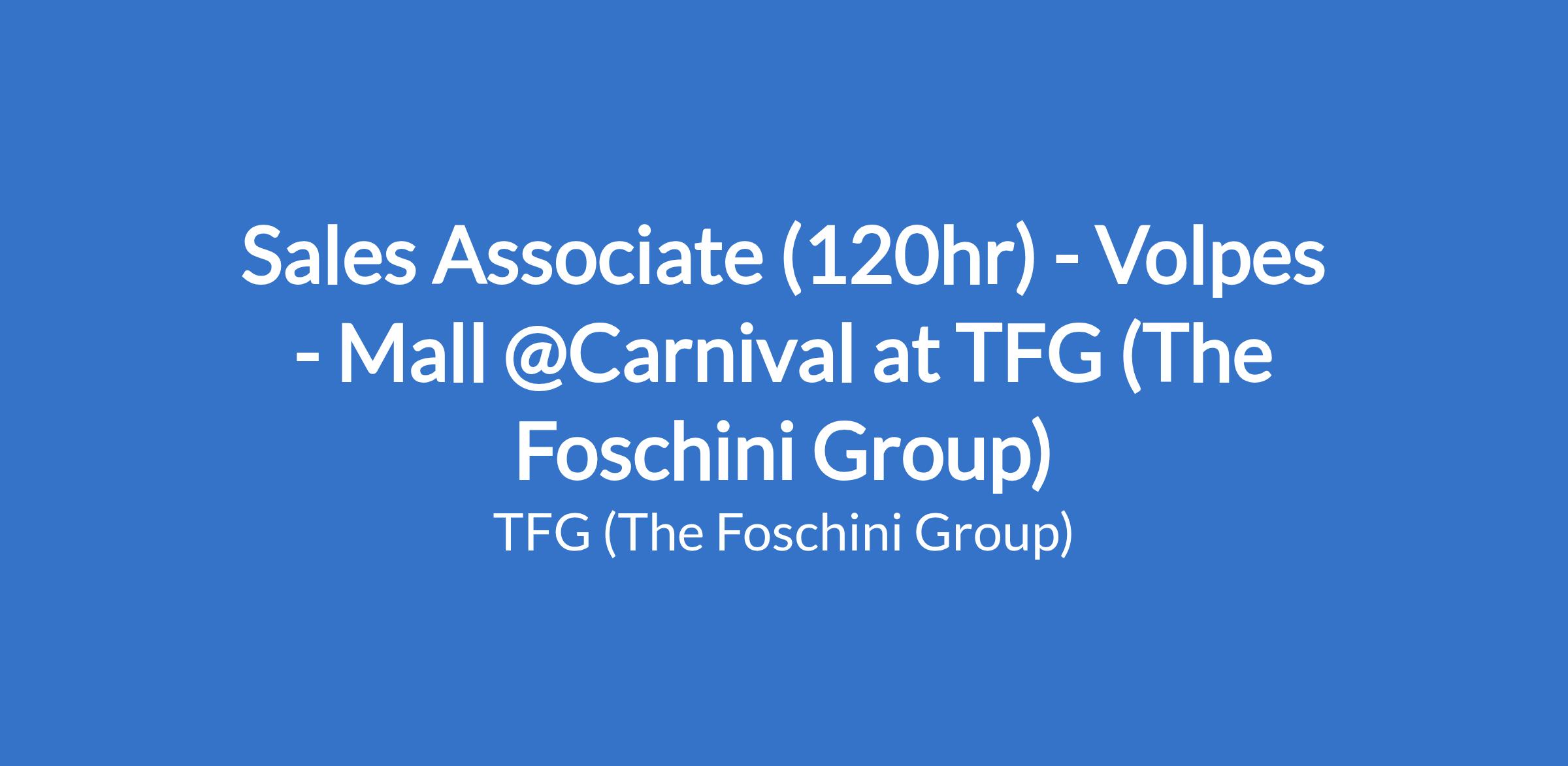Sales Associate (120hr) - Volpes - Mall @Carnival at TFG (The Foschini Group)
