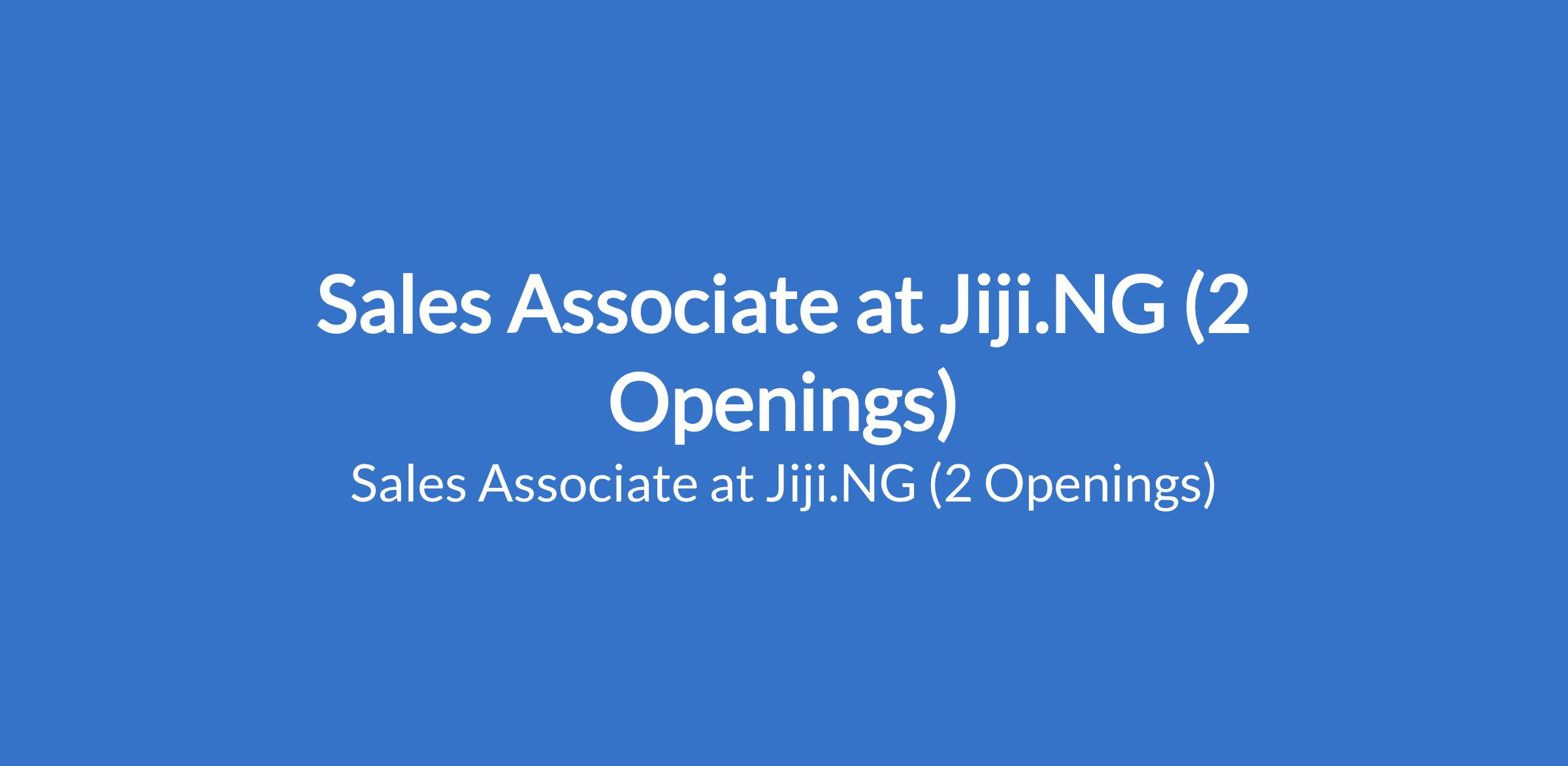 Jiji.NG is recruiting to fill the position of: Sales Associate. The position is located in Abuja (FCT) and Lagos State. Salary: N200,000 monthly. Interested candidates should possess relevant qualifications and should be between the ages of 18 and 40 years.