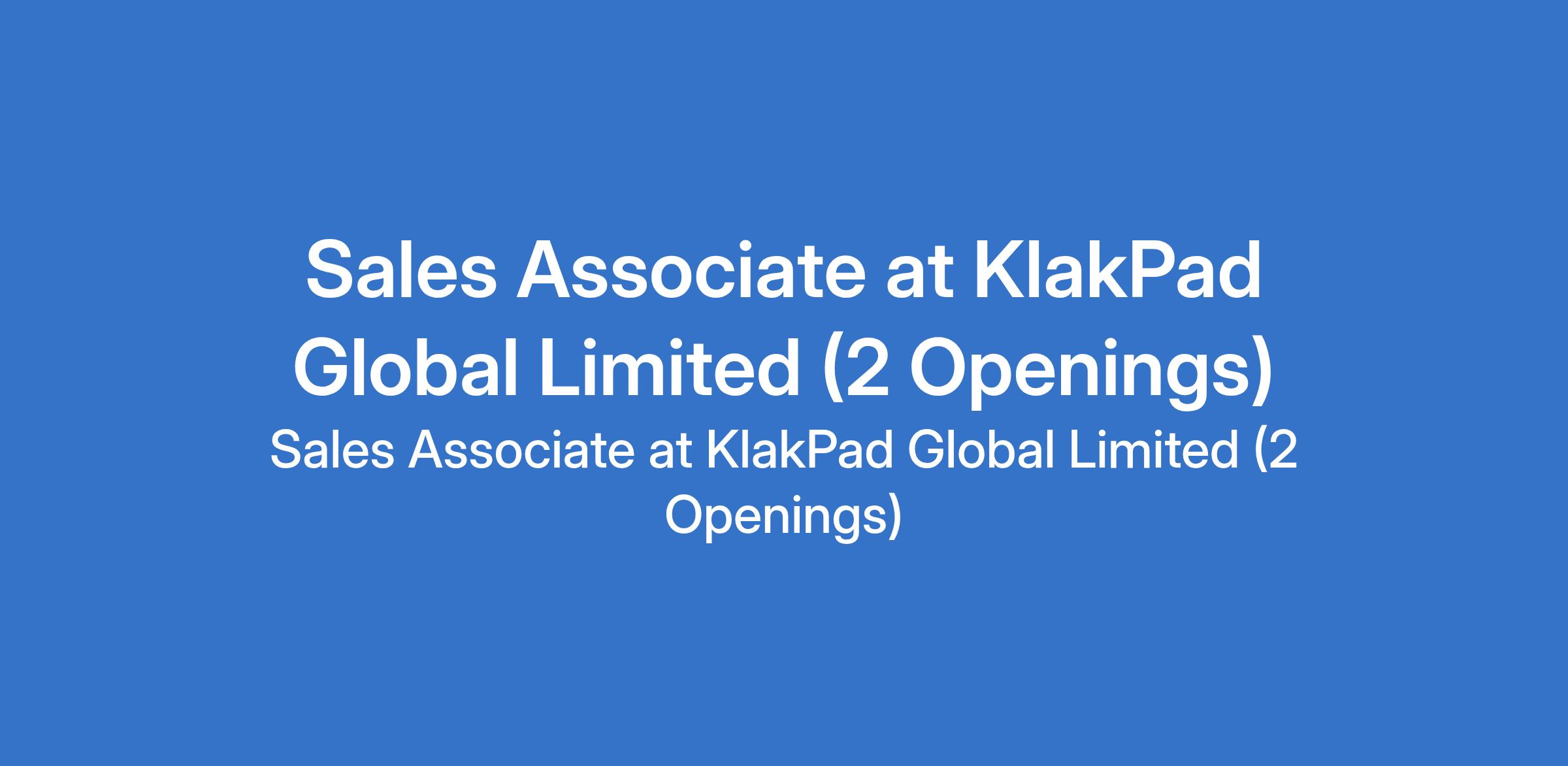 Sales Associate at KlakPad Global Limited (2 Openings)