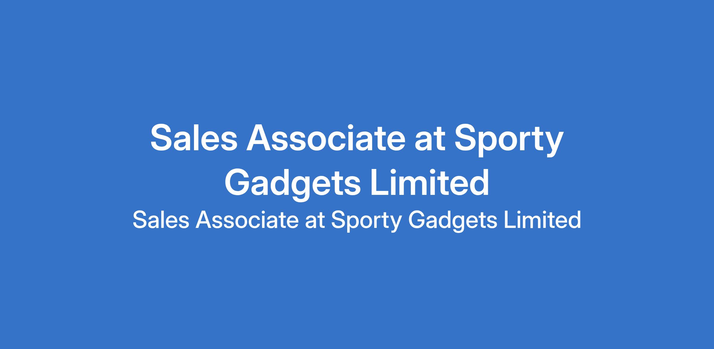 Sporty Gadgets Limited is recruiting to fill the position of: Sales Associate. The position is located in Ikorodu, Gbagada, Obalende, Ajao, Abule Ado, Festival Mall, Sangotedo, City mall - Lagos; Osogbo - Osun, and Ibadan - Oyo States. Interested candidates should possess relevant qualifications.