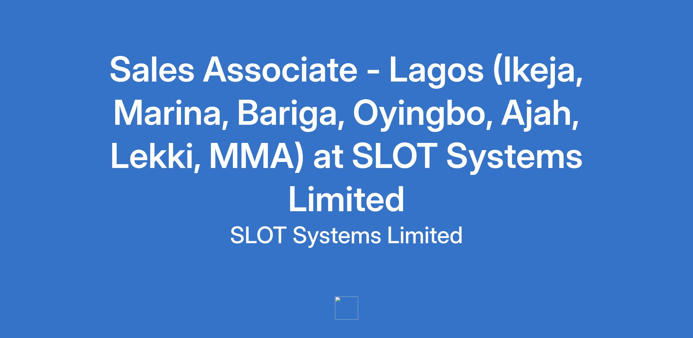 Sales Associate - Lagos (Ikeja, Marina, Bariga, Oyingbo, Ajah, Lekki, MMA) at SLOT Systems Limited